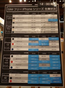 現在はiPhone 11 pro、iPhone XS、iPhone 8等がラインナップされています。iPhone12やiPhoneSE(第2世代)の取り扱いはありません。