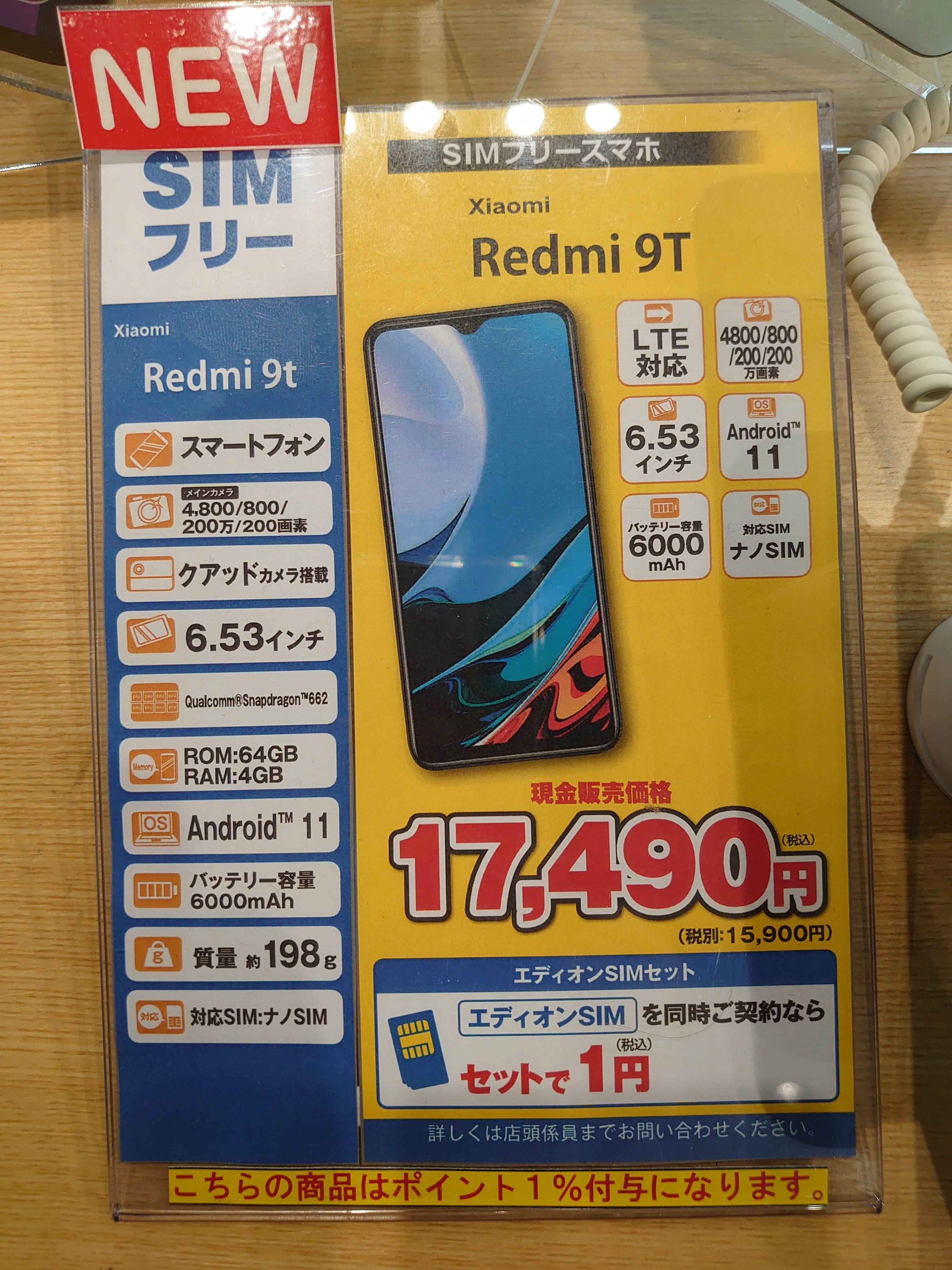 ・Xiaomi Redmi 9T 4+64GB(amazon.co.jp)