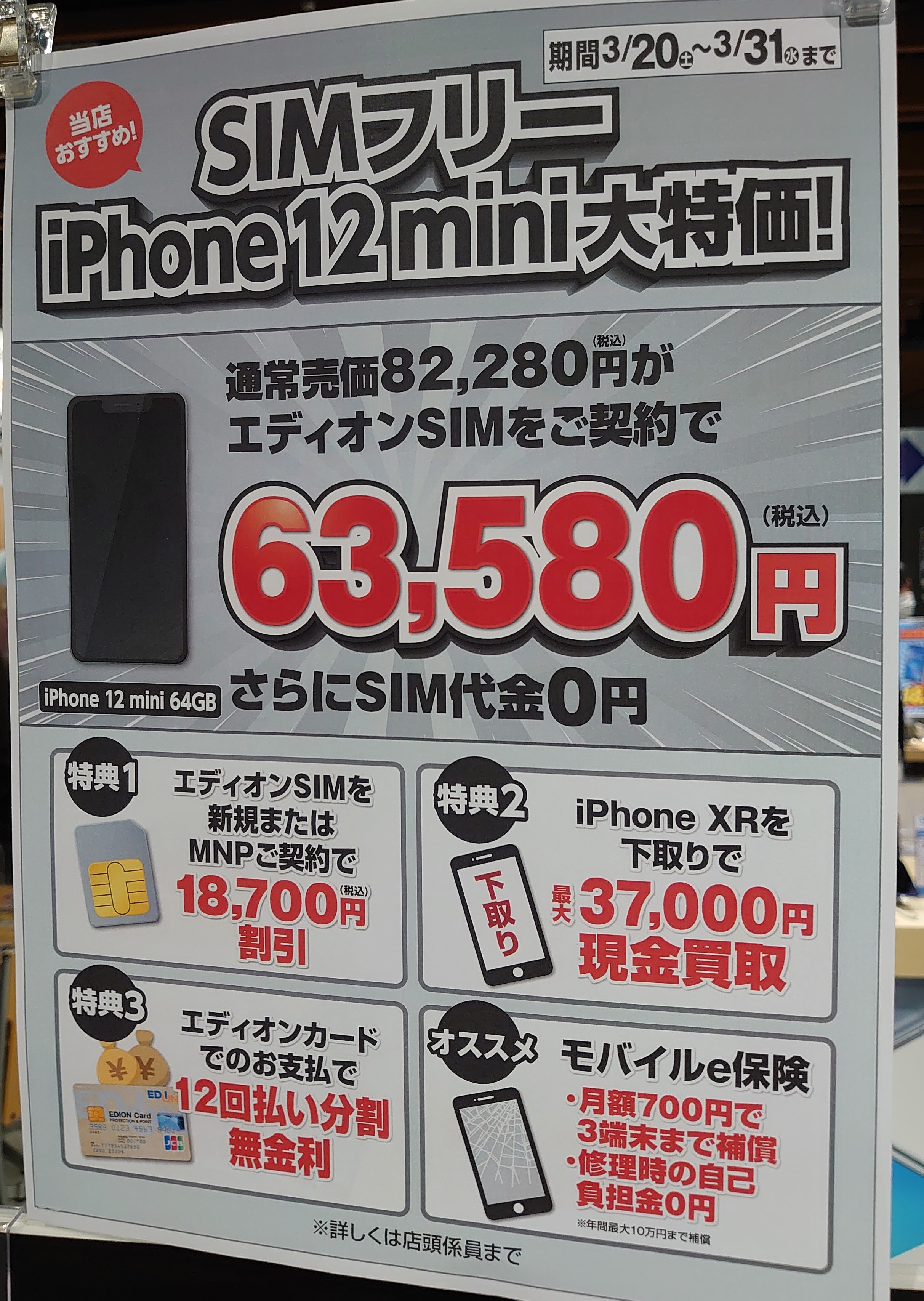 LINEモバイルの店頭受付が終了し、エディオンなんば本店のMVNOセットはエディオンSIM(ビッグローブ)のみとなっています。