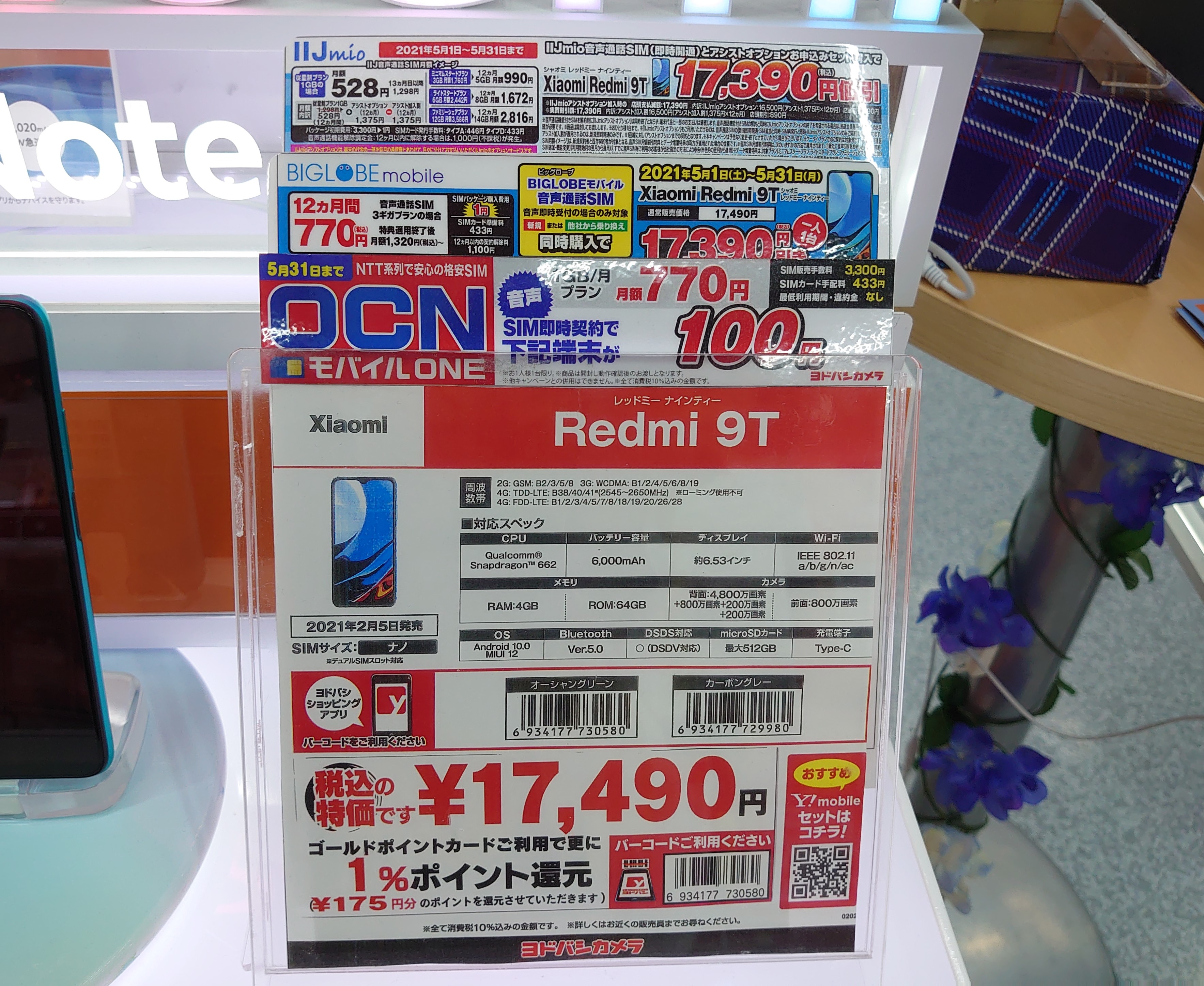 「Xiaomi Redmi 9T」は4月に引き続き、IIJmio等で100円です。