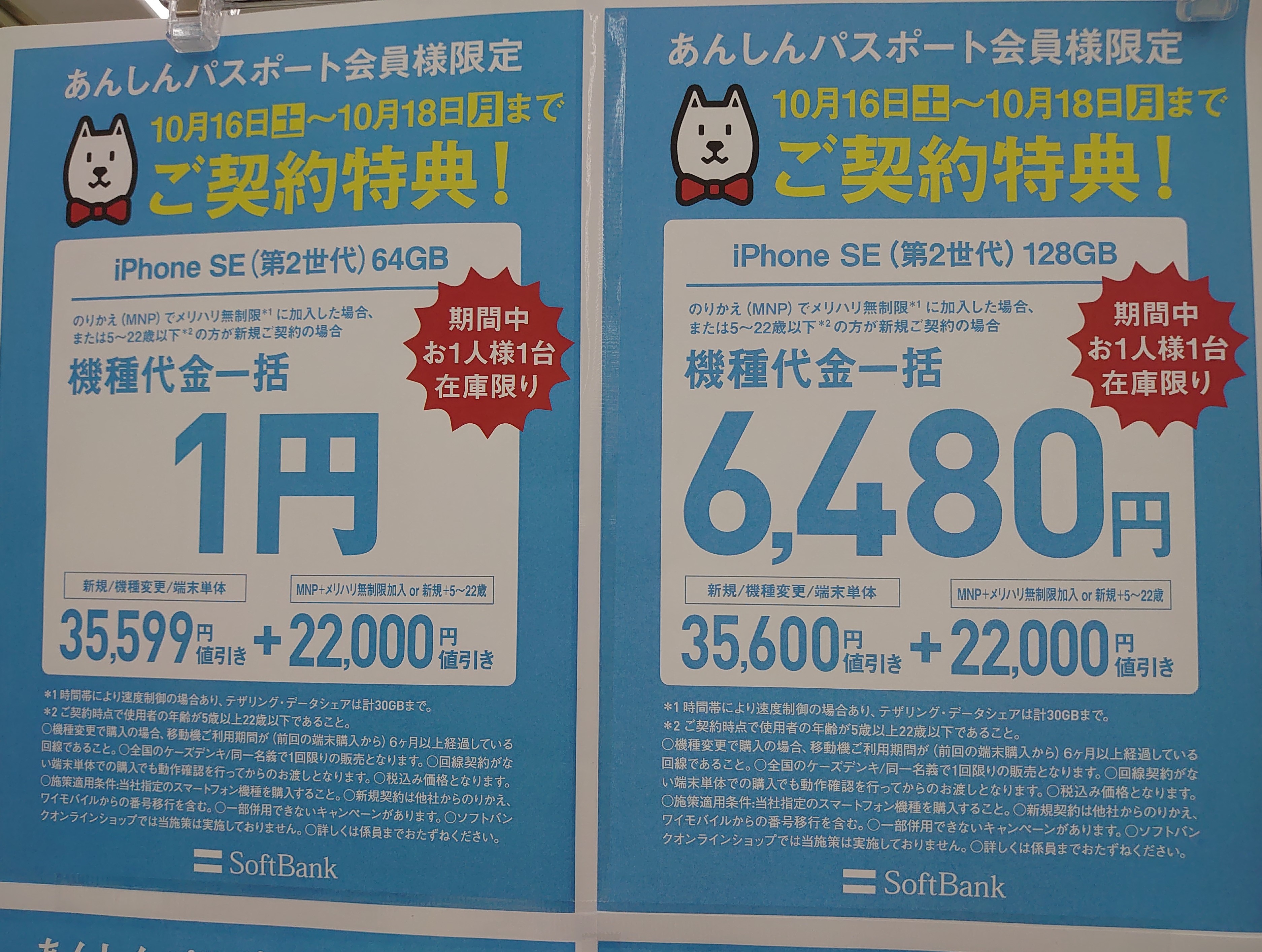 今週からかと思われますが、ケーズデンキのソフトバンクでは「iPhone SE 128GB(税込64,080円)」が割引対象となっています。おそらく他量販店等でも同様かと思われます。