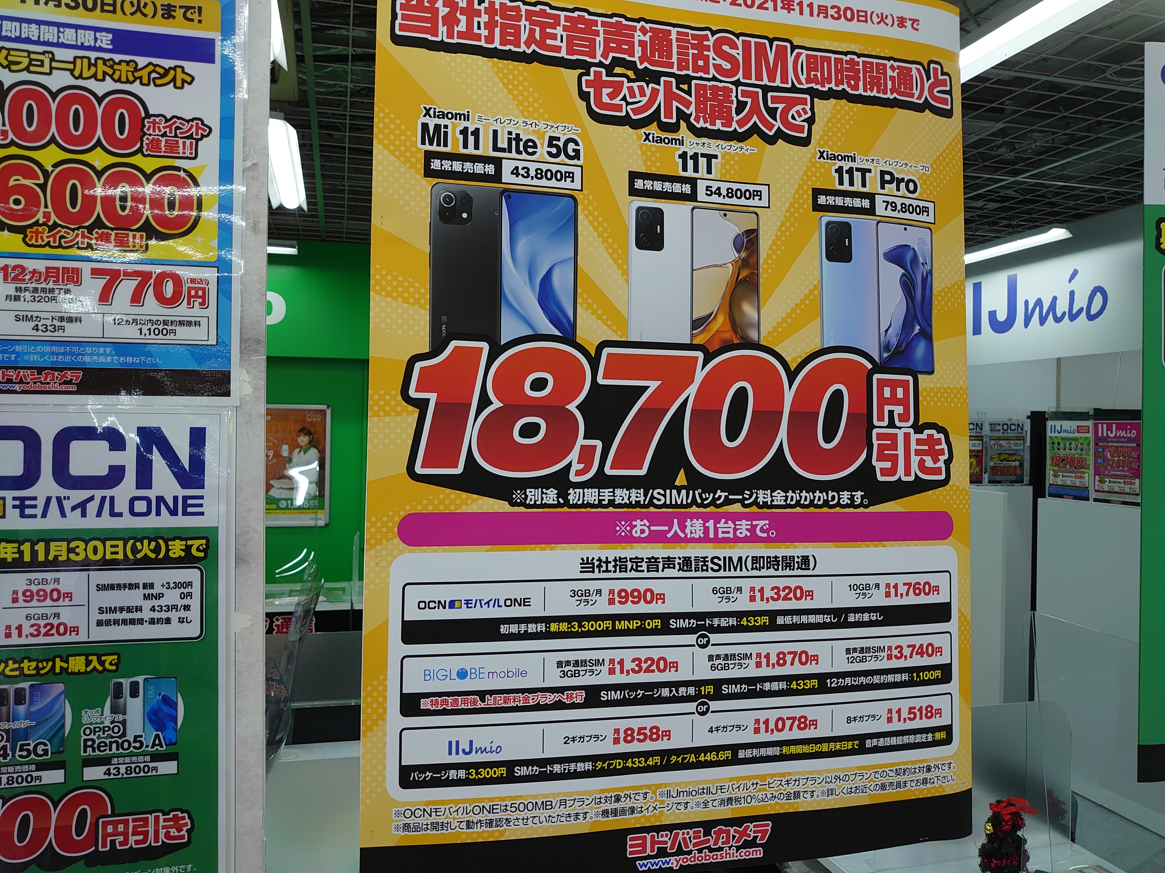 ヨドバシカメラ梅田では、「OPPO A73」「Xiaomi Redmi 9T(128GB)」が、IIJmio・ビッグローブ・OCNモバイルONE契約で980円(税込)となっています。