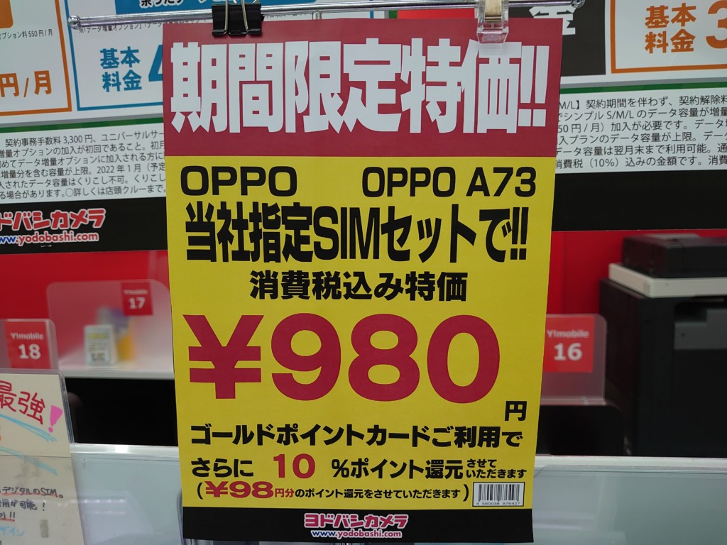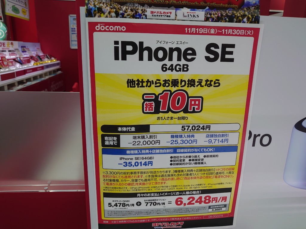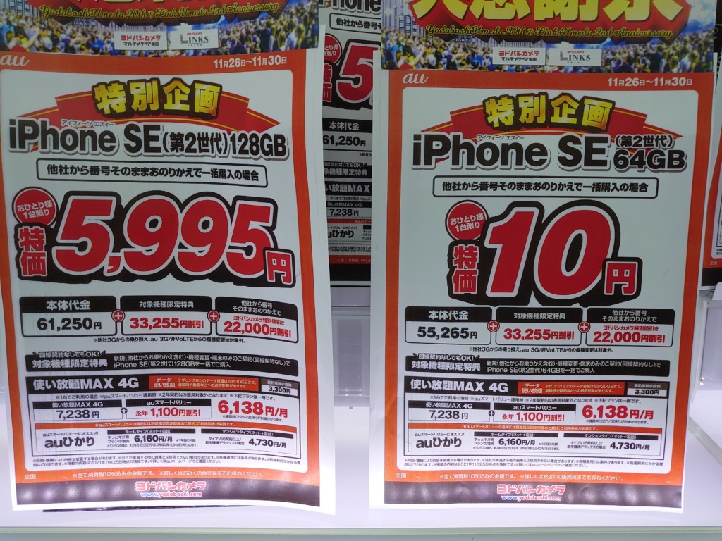 【11月末】ヨドバシカメラ梅田/iPhone SEほか 2021 11/27 SIMフリー キャリア共通 2021年11月27日 当ページにはアフィリエイト広告が含まれています。 いよいよ11月最後の週末となりました。 ヨドバシカメラ梅田では特に大きなキャンペーンは実施されていませんでした。12月に期待しましょう。 IIJmioのmoto g10も今週は商品券無しです。 SIMフリー キャリア共通 よかったらシェアしてね! URLをコピーしました! URLをコピーしました! この記事を書いた人 Sakura R5G ケータイ特価情報をお届けします。 遠慮なくコメント頂ければ結構ですが、コメントは私が承認するまで表示されませんので、ご注意下さい。 ※2024年7月1日より、参考程度の投稿以外はX(旧ツイッター)に投稿しようと思っています。 人気記事 ワイモバイル 【8/14(木)より】価格(再)更新、ワイモバイル「Google Pixel 8a」が機種変更で49,536円にPayPay還元/事務手数料0円/ヤフーショッピング店 2025年8月14日 ワイモバイル 【2025/11版】ワイモバイル「iPhone 13(認定中古品)」が機種変更一括29,520円/事務手数料3,850円/オンラインストア 2025年11月9日 楽天モバイル 【2025/12版】楽天モバイル「nubia S2R」や「Galaxy A25 5G」がMNP一括1円/事務手数料0円 2025年12月2日 ドコモ 【2025/8版】ahamoへのSIMのみMNPで20,000dポイント(分割進呈)/事務手数料0円/NTTドコモ 2025年8月10日 楽天モバイル 【7/1(火)より】楽天モバイルへのMNPで▲22,000円割引/「Nothing Phone (3a)」が一括32,890円など/事務手数料0円 2025年7月1日 新着記事 【1/10(土)】 Joshin webで「Xiaomi 14T Pro 512GB(パッケージ不良)」が79,800円 【1/15(木)発売】楽天モバイル「Nothing Phone (3a) Lite」が32,890円/はじめて申し込み&MNPで16,000ポイント/2回線目以降は新規で6,000ポイント 【1/13(火)まで】UQモバイル「自宅セット割」適用で10,000ポイント追加還元/ビックカメラ コメント コメントする コメントをキャンセルコメント ※ 名前 メール サイト 新しいコメントをメールで通知 新しい投稿をメールで受け取る