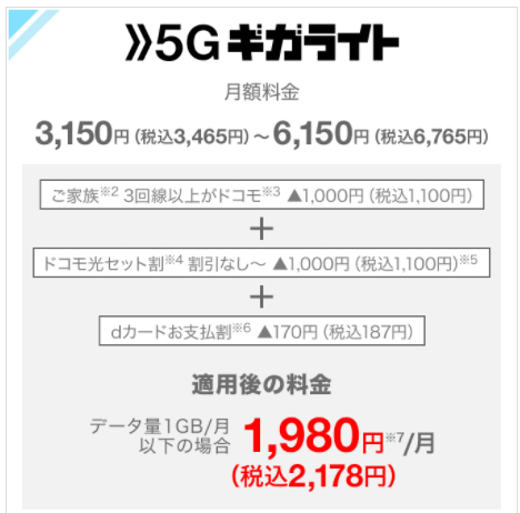 ギガライトで契約した後の月額料金を抑える方法ですが(家族割やU30ロング割等の各種施策が受けられない人)、①ケータイプランに変更、②データプラスに変更、があります。その他、ahamo(税込2,970円/月)に変更されてもよろしいかと思います。