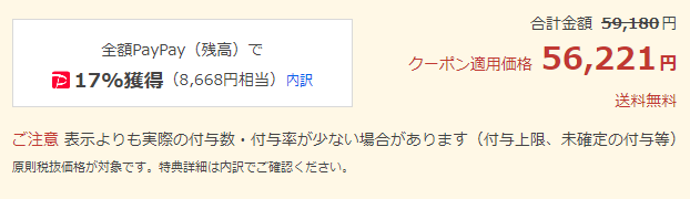 自身のPayPay還元額はYahoo!店にログインの上、ご確認下さい。