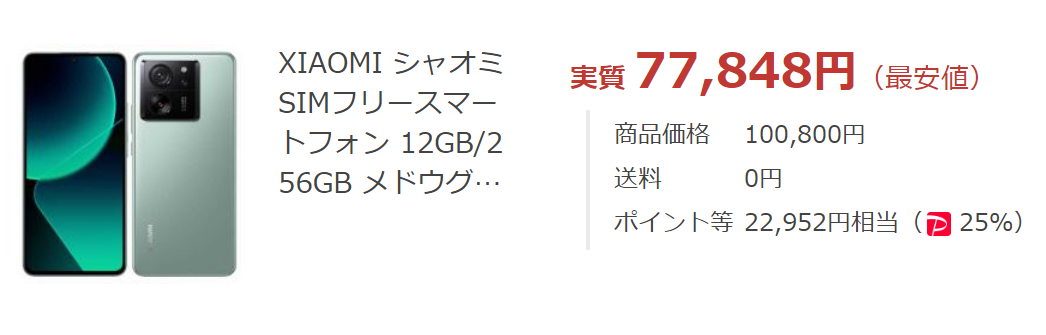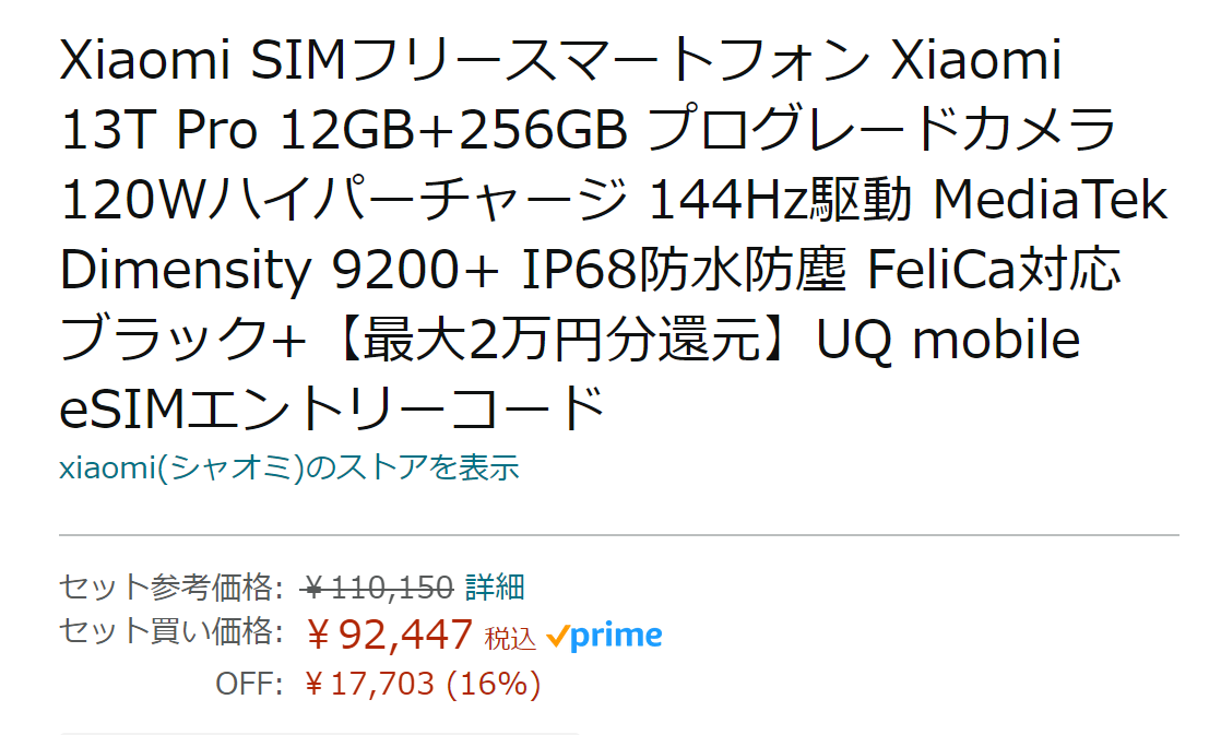 2024年3月24日(日)、Amazon(アマゾン)では、UQモバイルへのMNPで「Xiaomi 13T Pro」SIMフリーが、92,447円(税込)に最大20,000円相当のauPAY還元となっています。