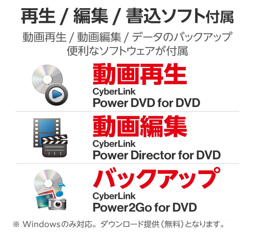 また、DELL等のデスクトップの一部は光学ドライブ非搭載(オプション搭載も不可)となっているため、単純にDVDの再生だけでいいという人は、ロジテックの外付けDVDドライブにPowerDVD(旧版)が付属されているので以下のようなものでもいいと思います。