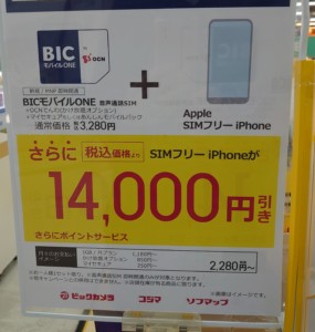 「BICモバイルONE」となっていますが、OCNそのものです。SIMフリーiPhoneについてはヨドバシカメラでも各MVNOの割引施策が行わていますので、プランや月額基本料金等も比較しながら、自分に合ったMVNOを選択すればよいのではないでしょうか。