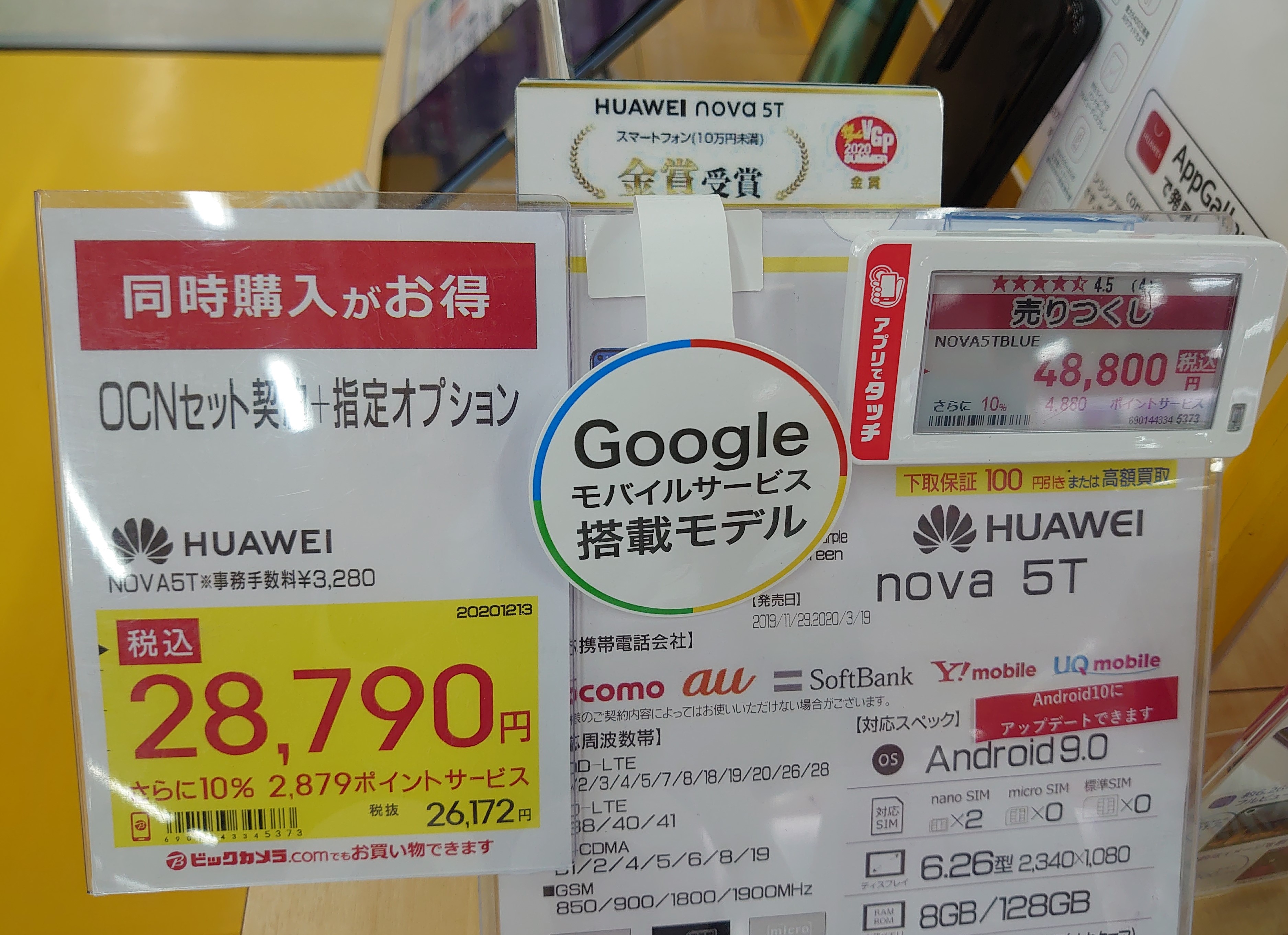 GMS搭載モデル「HUAWEI nova 5T」がOCNセットで28,790円というのも安いと思います。