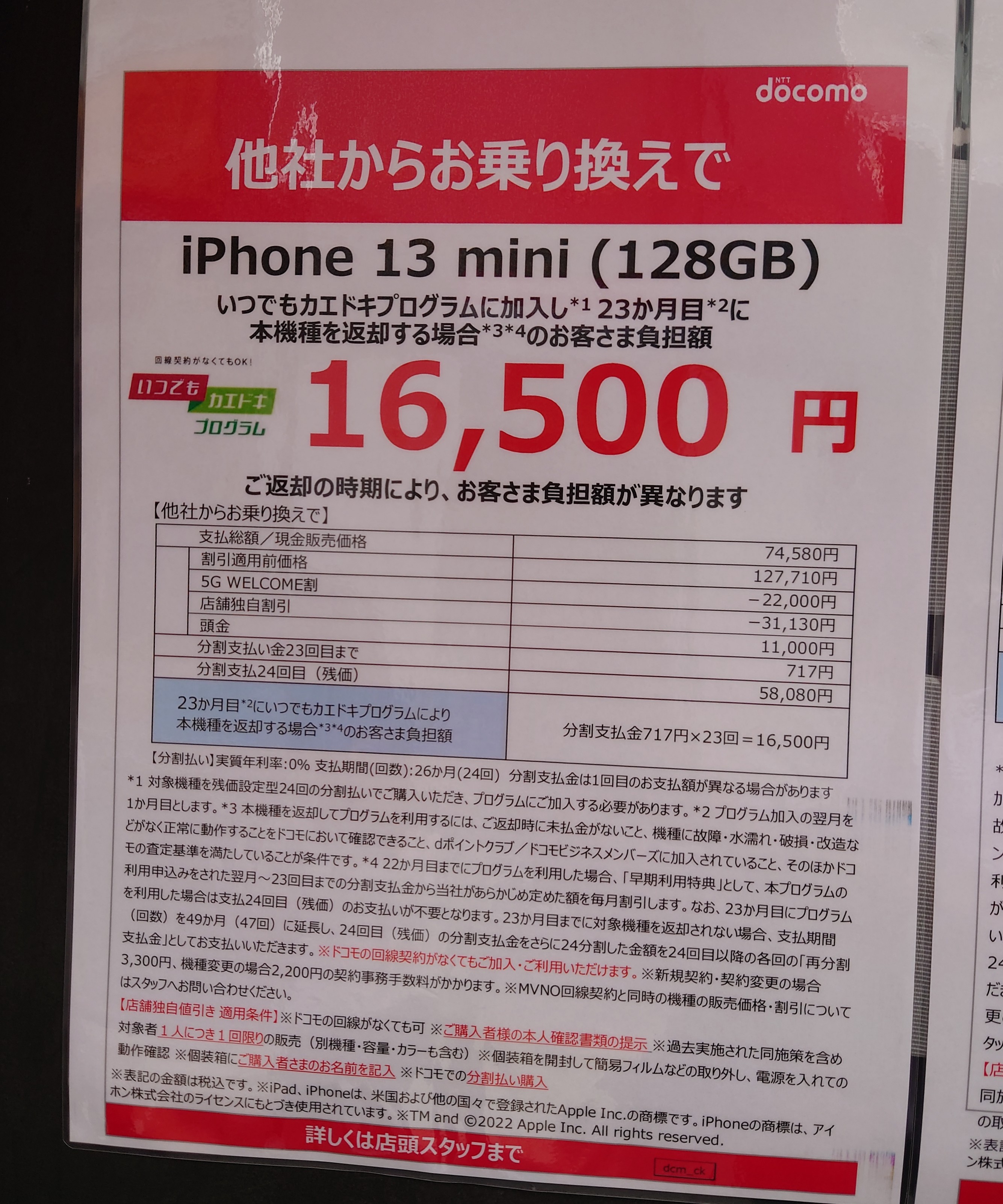 「iPhone 13」系の表示価格は返却前提の実質価格ですのでご注意を。また、個装箱への名前記入が必要な可能性があります。