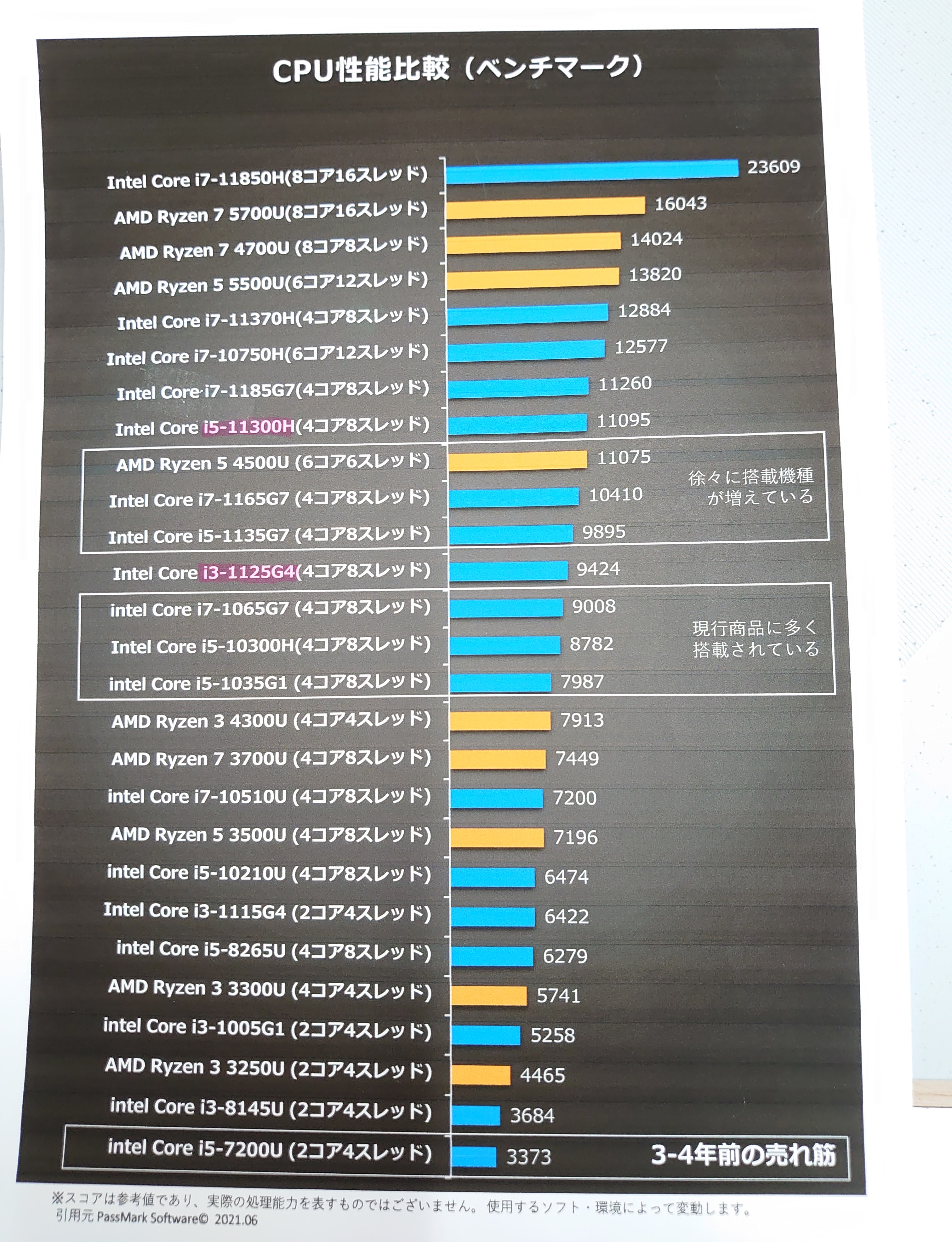 そしてCPUは何となく、「Intel入ってる」のCore i5・i7(第11世代)を選好しがちですが、AMDの「Ryzen 5 5500U」で十分Core i5(第11世代)と同等若しくはそれ以上の処理能力を期待出来るとのことです。