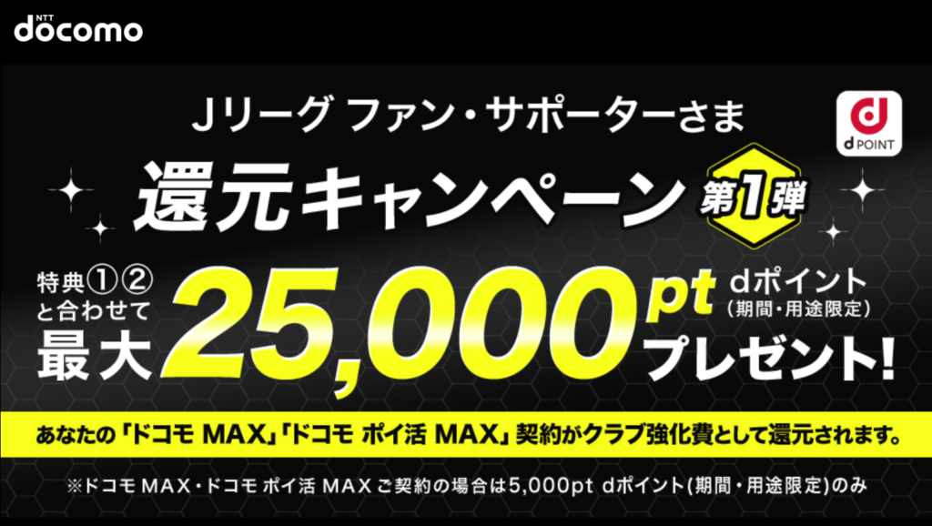 前回のような純ドコモキャンペーンではありませんが、カターレ富山「Jリーグ ファン・サポーターさま必見 還元キャンペーン第1弾!dポイント5,000ptプレゼントキャンペーン」が実施されています。