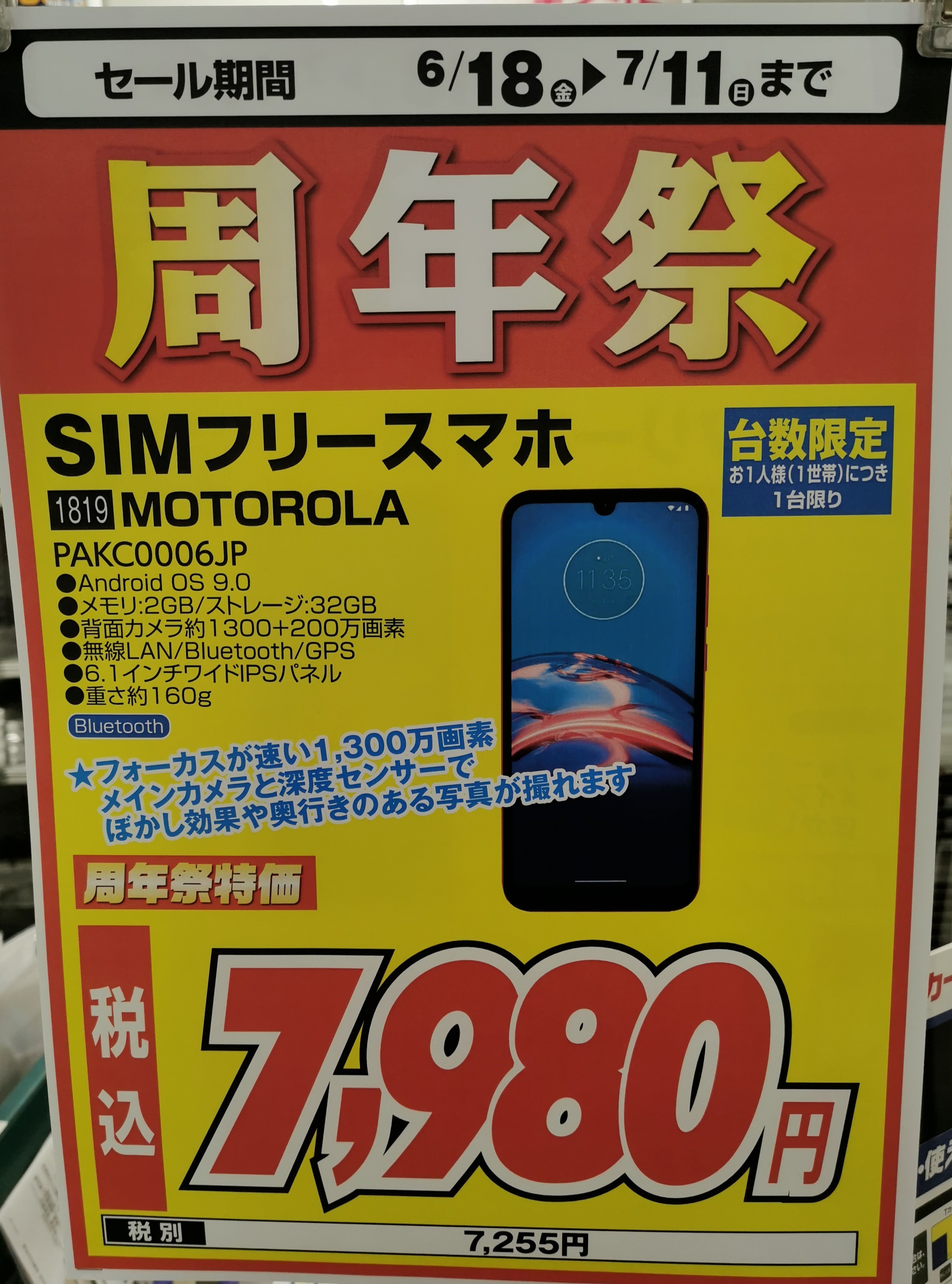 SIMフリースマホについては特に目立ったものはありませんでしたが、moto e6sの7,980円(税込)は安いと思います。公式オンラインストアでは14,800円(税込)です。