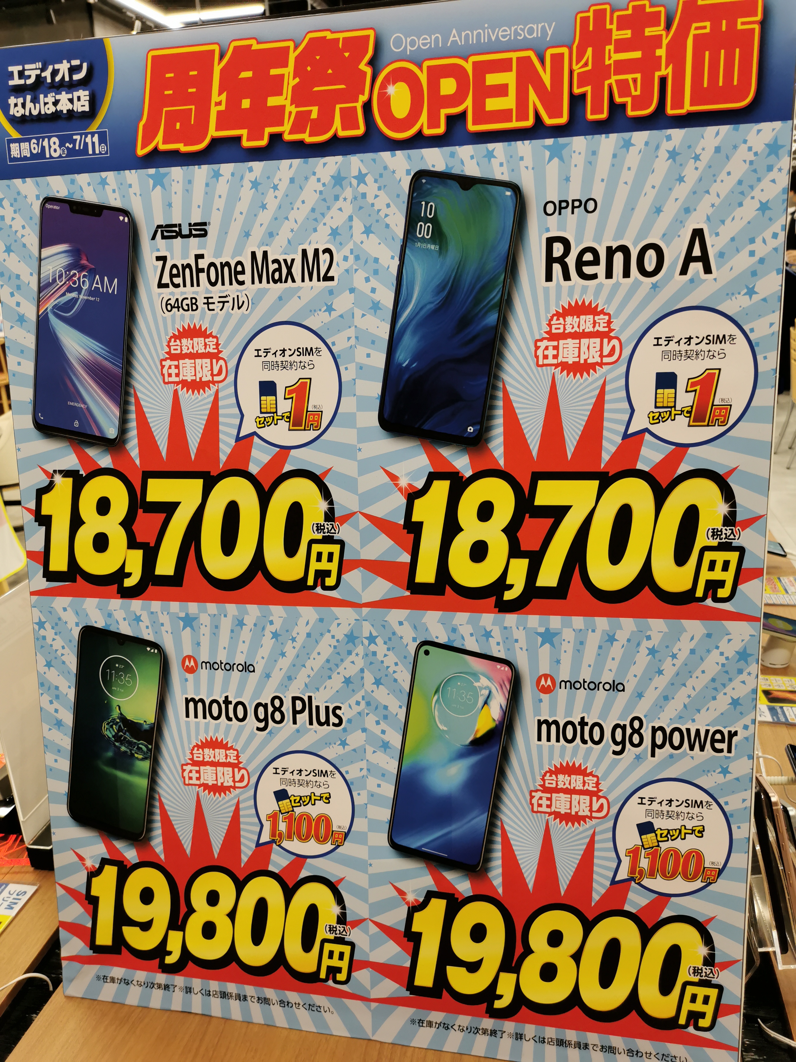 エディオンSIMセットでは、moto g8 plusもなかなか安いと思います。単品としても安いのではないでしょうか。公式オンラインストアでは31,799円(税込)です。