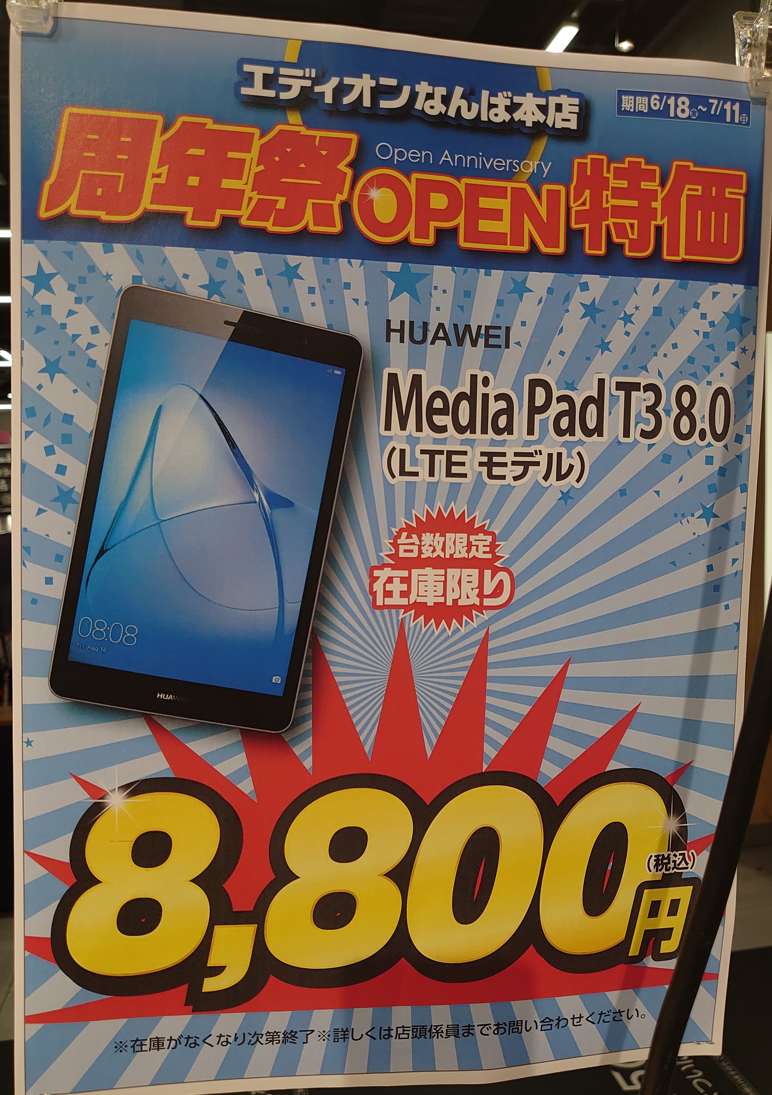 その他では「HUAWEI MediaPad T3 8.0 タブレット(LTEモデル)」が8,800円(税込)等となっています。
