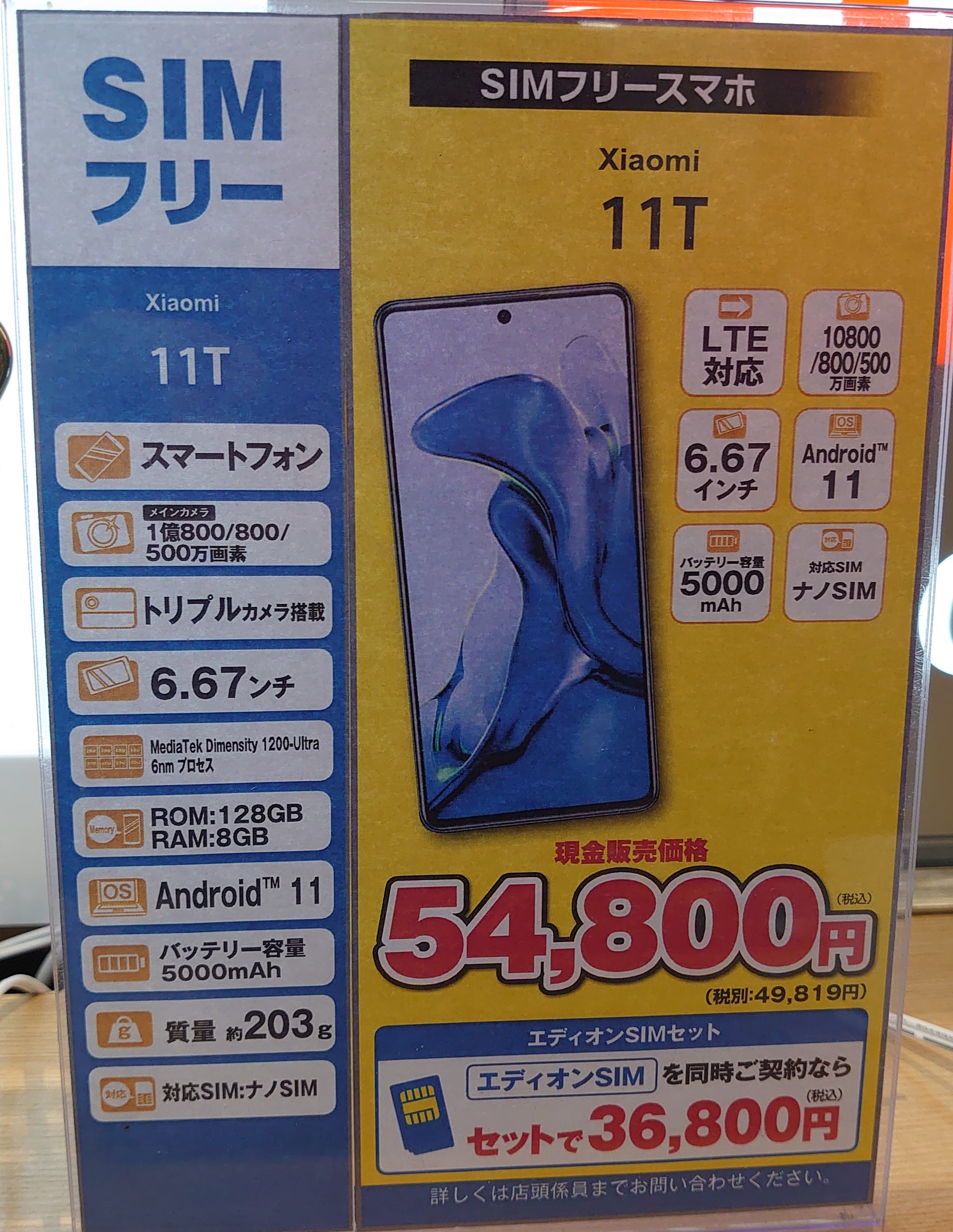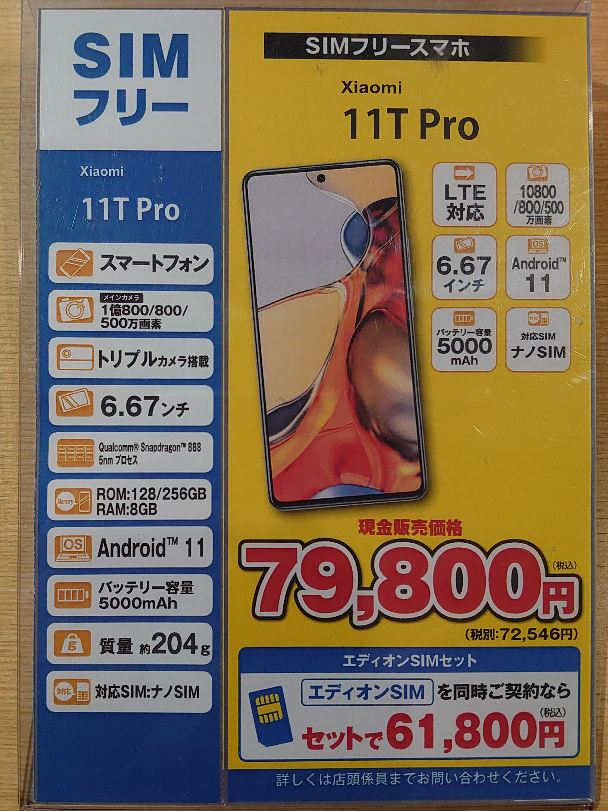 「Xiaomi 11T Pro」と「Xiaomi 11T」について簡単に価格比較をしてみましたので参考まで。エディオンSIMは契約窓口がエディオン量販店なだけで、ビッグローブそのものです。