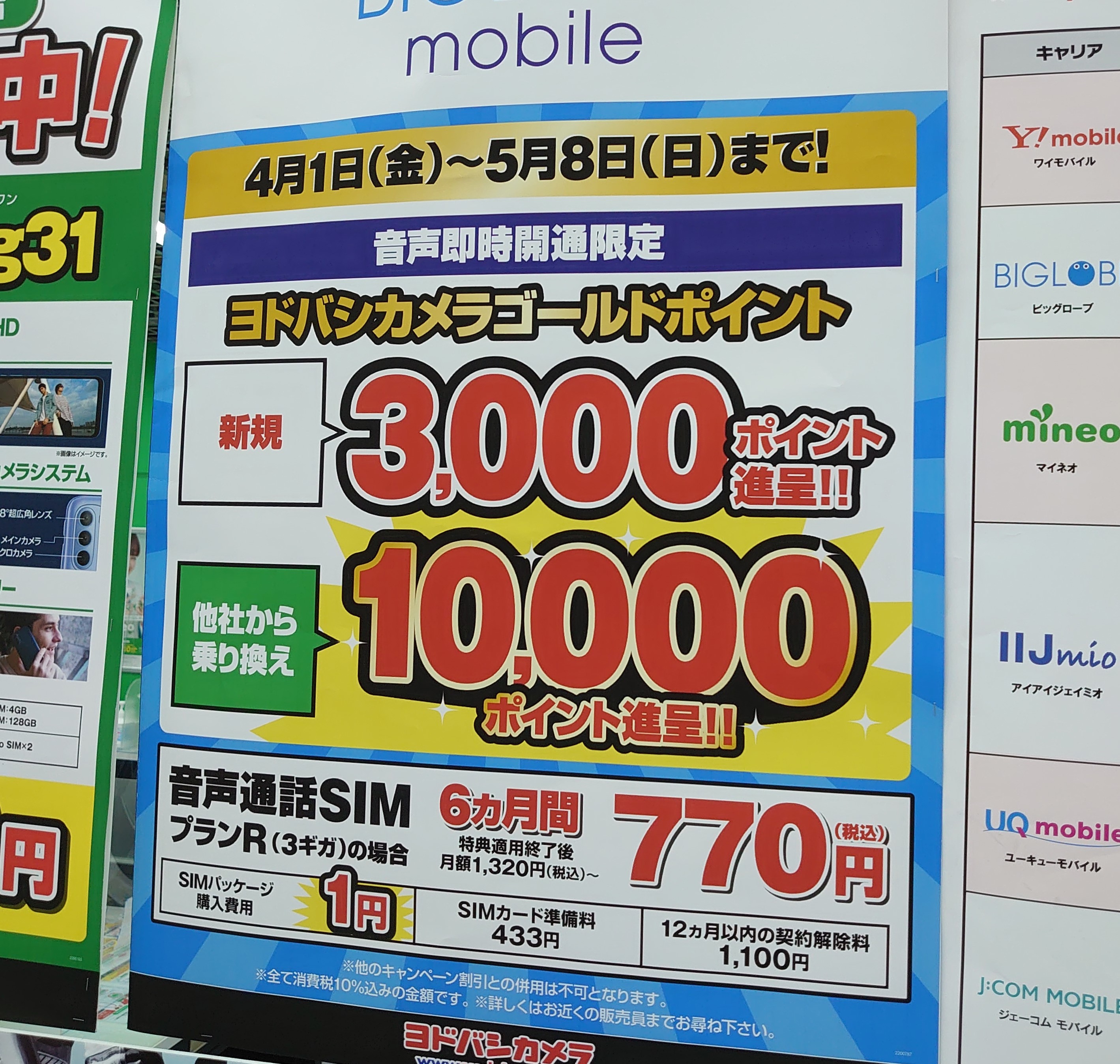 2022年4月に入り、ビッグローブことエディオンSIMや、ビックカメラ・ヨドバシカメラのビッグローブポイント還元は大幅減となっています。