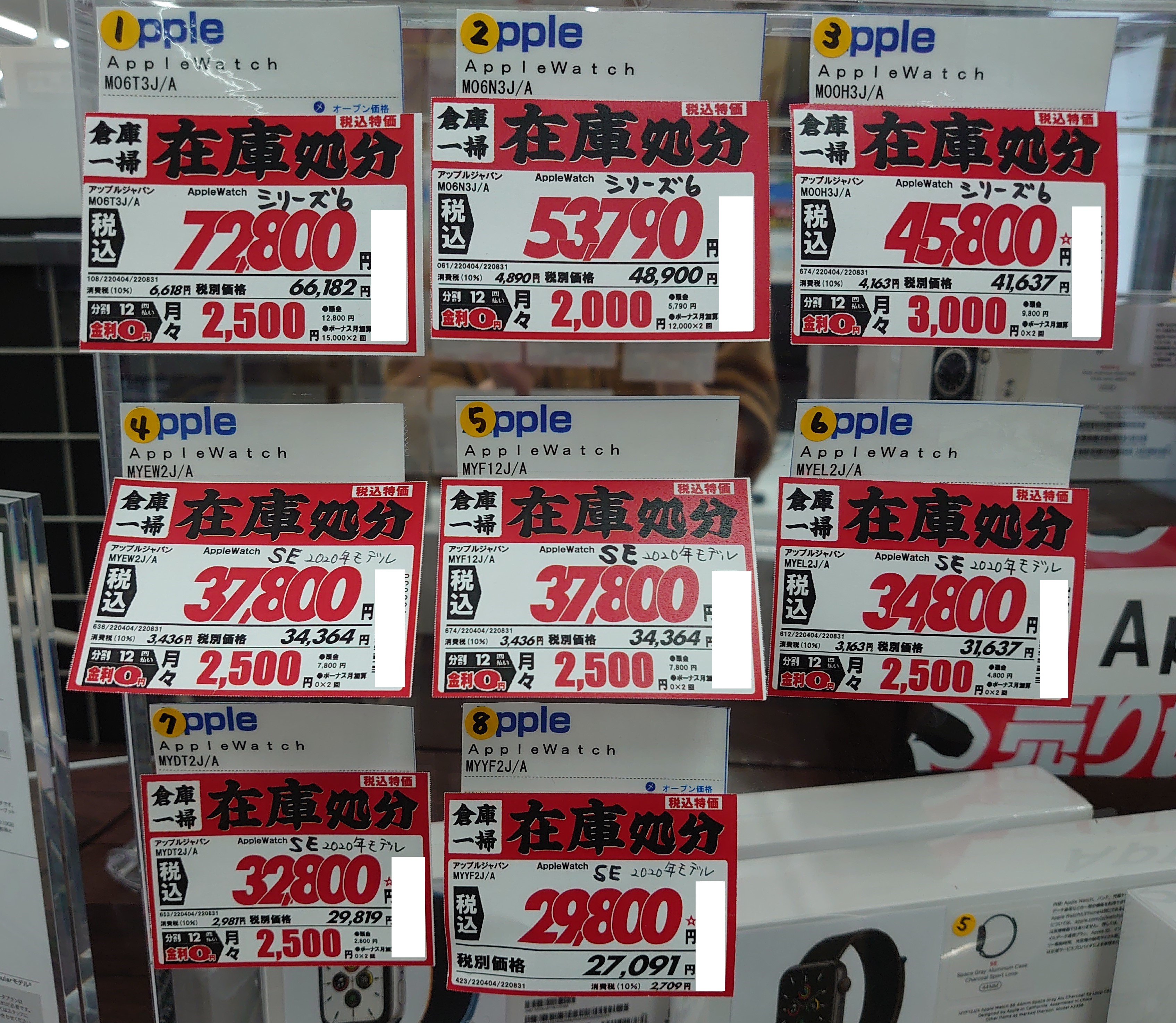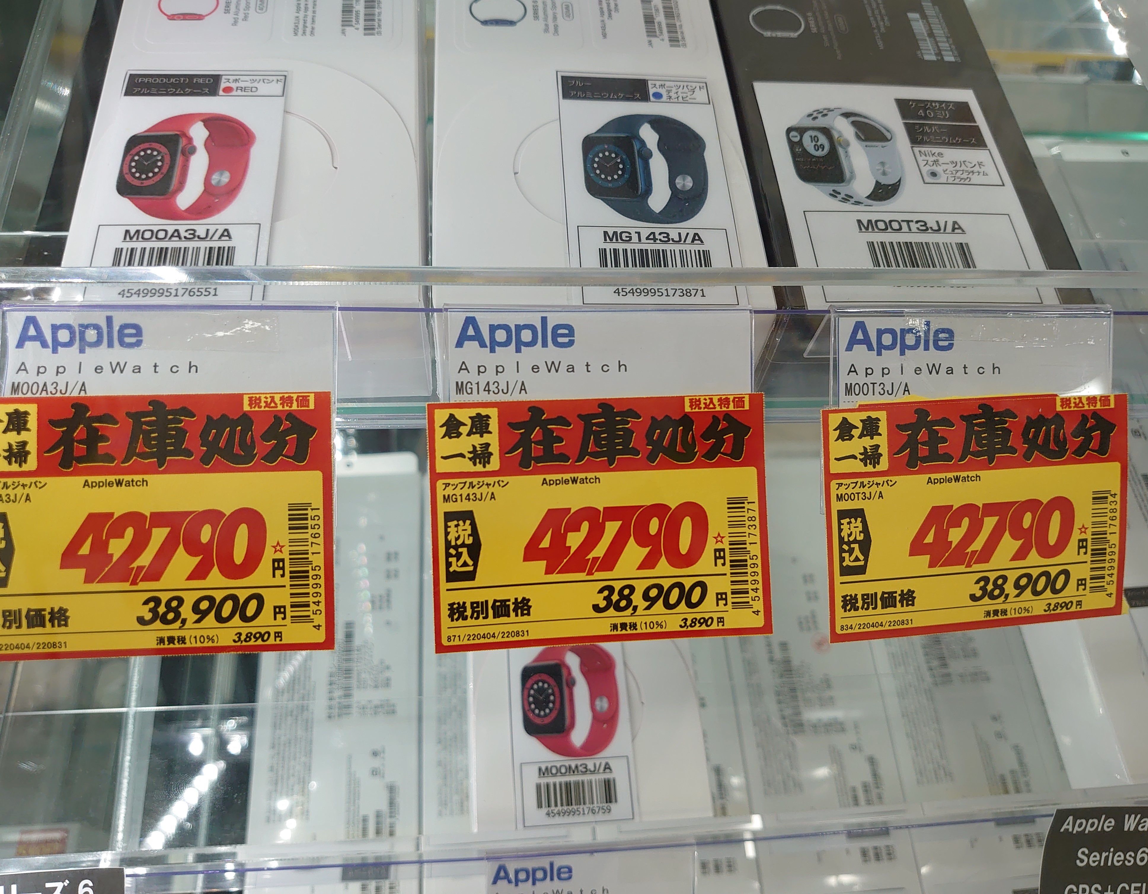例えば、「Apple Watch Series 6 GPSモデル 40mm(税込47,080円)」が約10%OFFで42,790円(税込)です。超特価というわけではありませんが、京都四条河原町店なら、エディオンカード会員限定で、さらに税抜価格に10%ポイント還元(3,890ポイント)となります。なんば本店で実施されているかは不明です。 2020年発売のApple Watch SE(税込32,800円~)は10%OFFで29,800円(税込)~です。