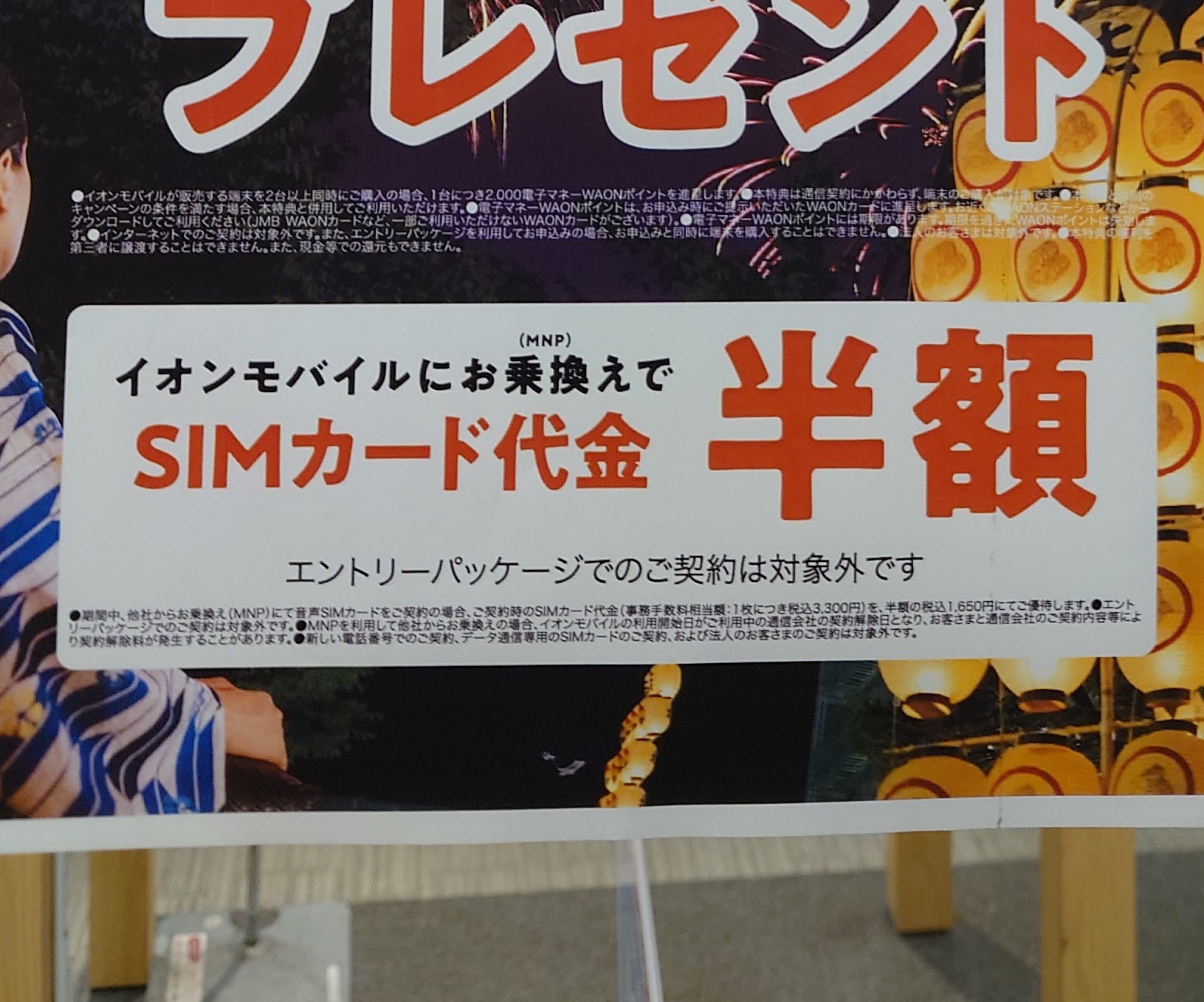 イオンスタイル茨木のイオンモバイルでは以下のキャンペーンが実施されています。大阪ドームシティでも同じく実施されていますが、楽天からのMNPと事務手数料半額CPは全国的に実施されているか否かは不明です。