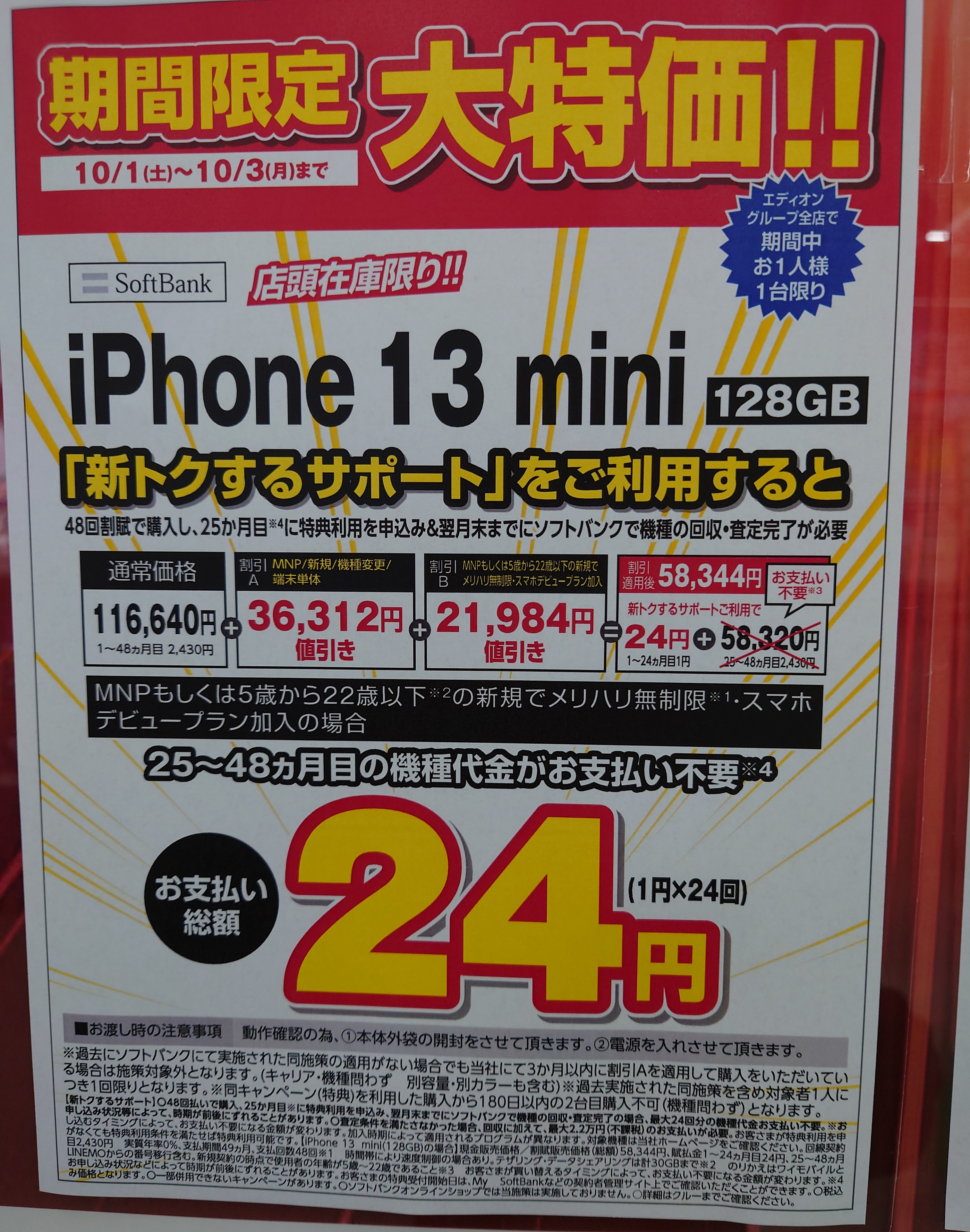 10/16時点で、ジョーシンではドコモもやってました。
