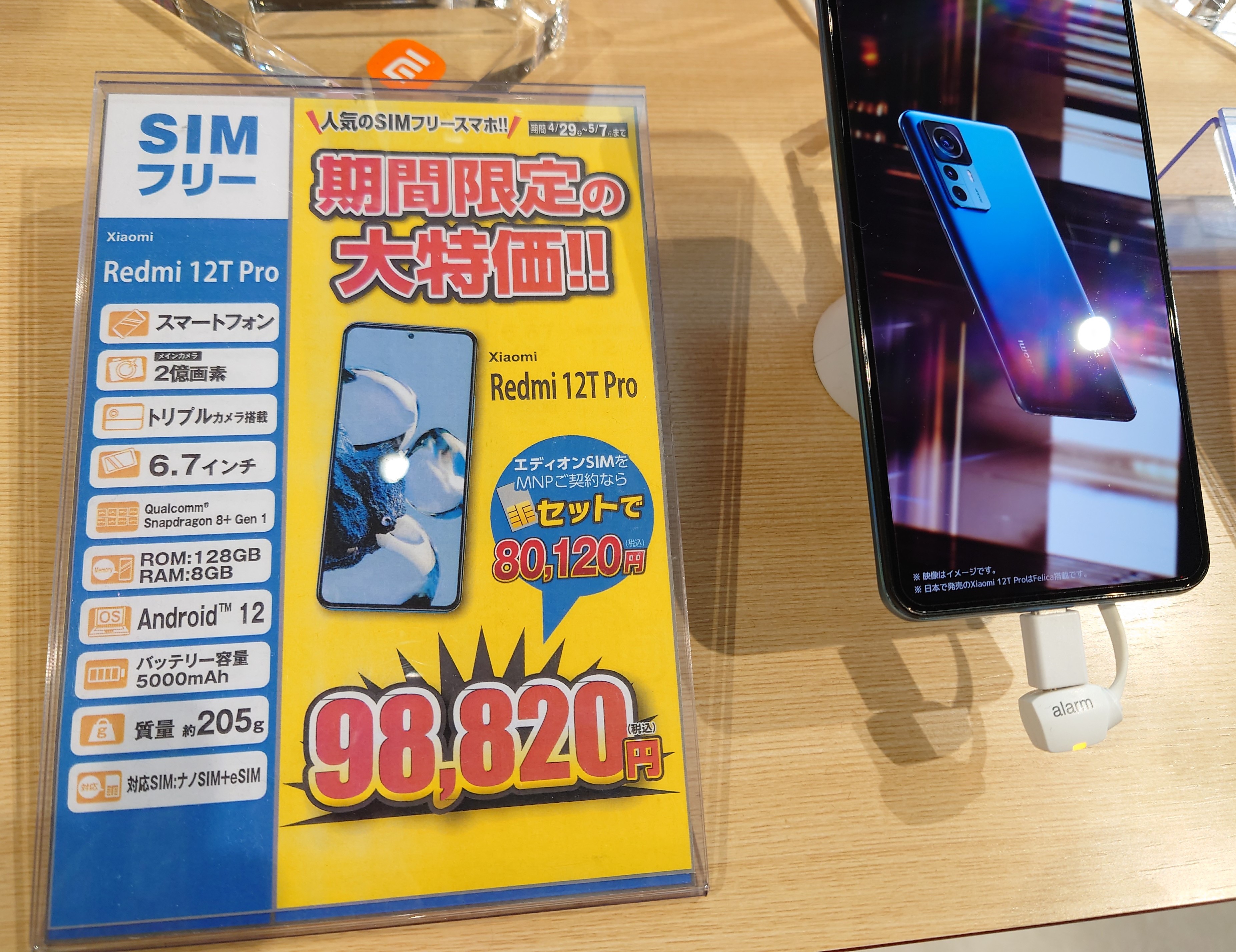 エディオンなんば本店では、2022年12月発売「Xiaomi 12T Pro SIMフリー」が、ビッグローブことエディオンSIMへのMNPで一括80,120円(税込)となっています。事務手数料は0円。5/7(日)まで。