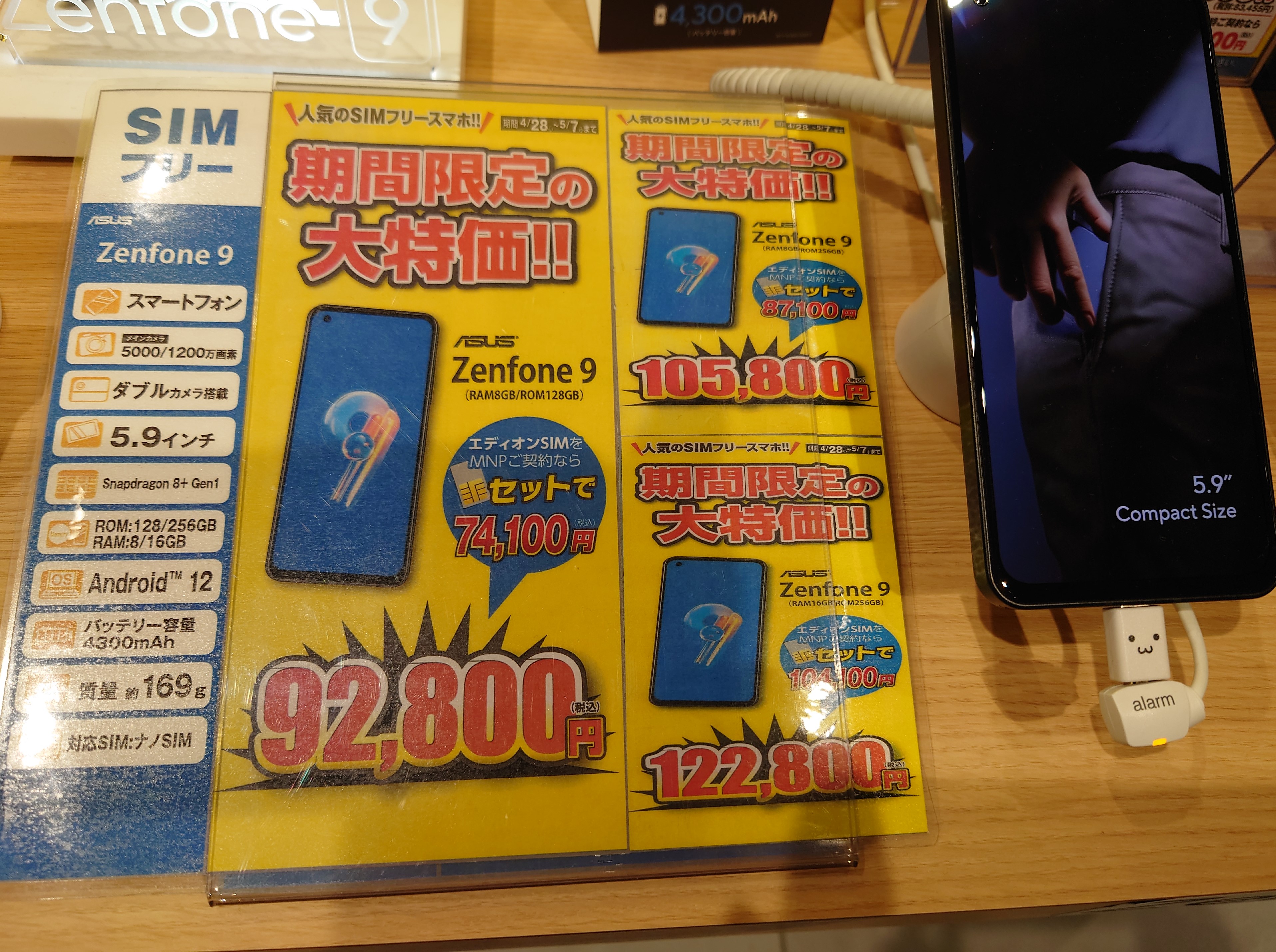 直接確認はしていせんが「Zenfone 9」も15%ポイント還元かと思われます。エディオンSIMセット(MNP)で一括74,100円(税込)に約10,105ポイント還元ですので、こちらも大変お買いトクかと思います。