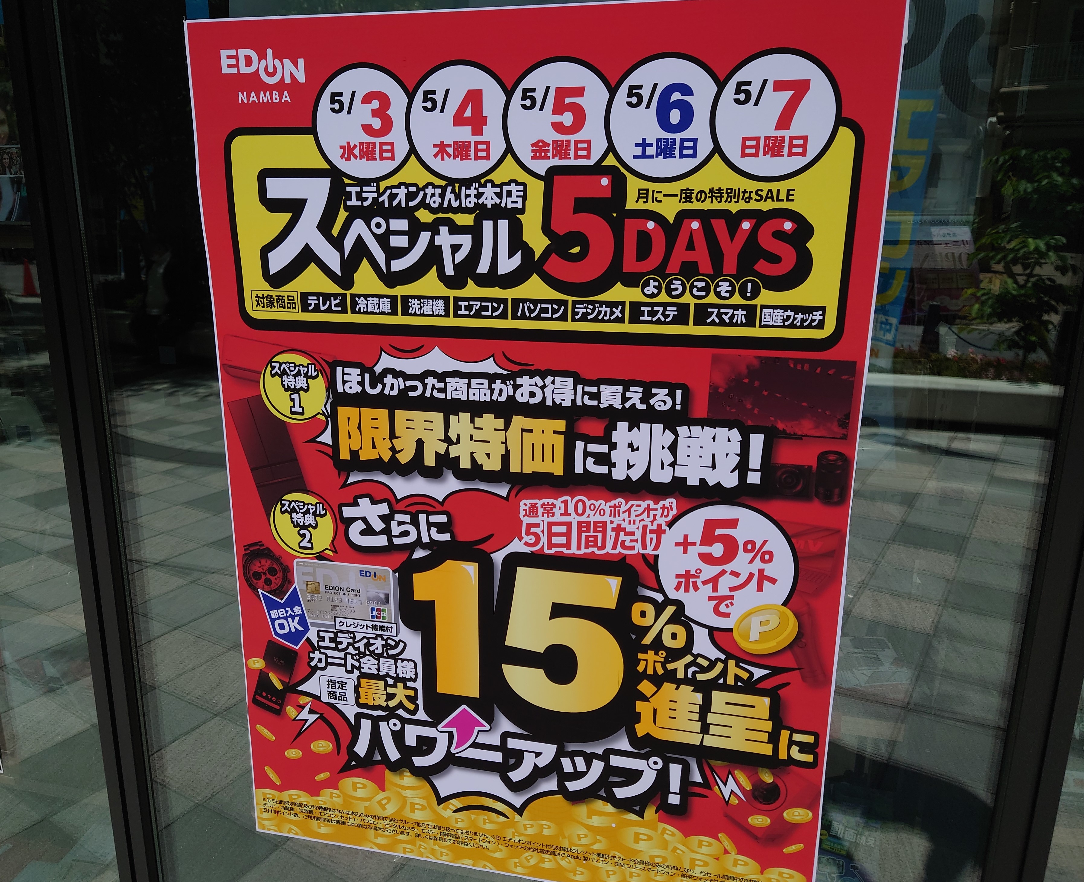 そして、5/3(水)~5/7(日)はエディオンカード会員限定で15%エディオンポイント還元CP実施中ですので、税抜価格に対して15%還元で、約10,925ポイントの超BIG還元となります。