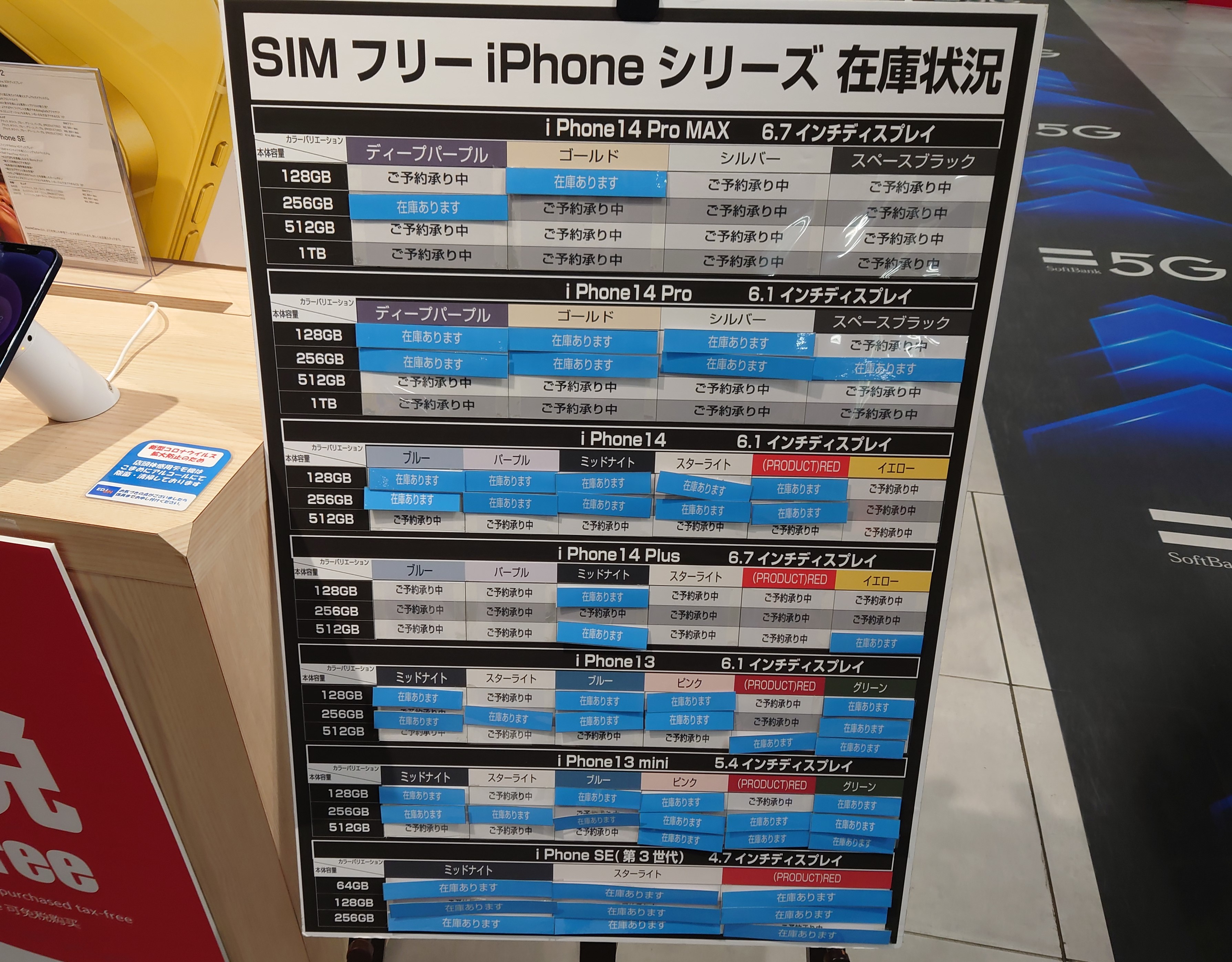 5/3(水)時点のSIMフリーiPhone在庫状況は以下のとおり。