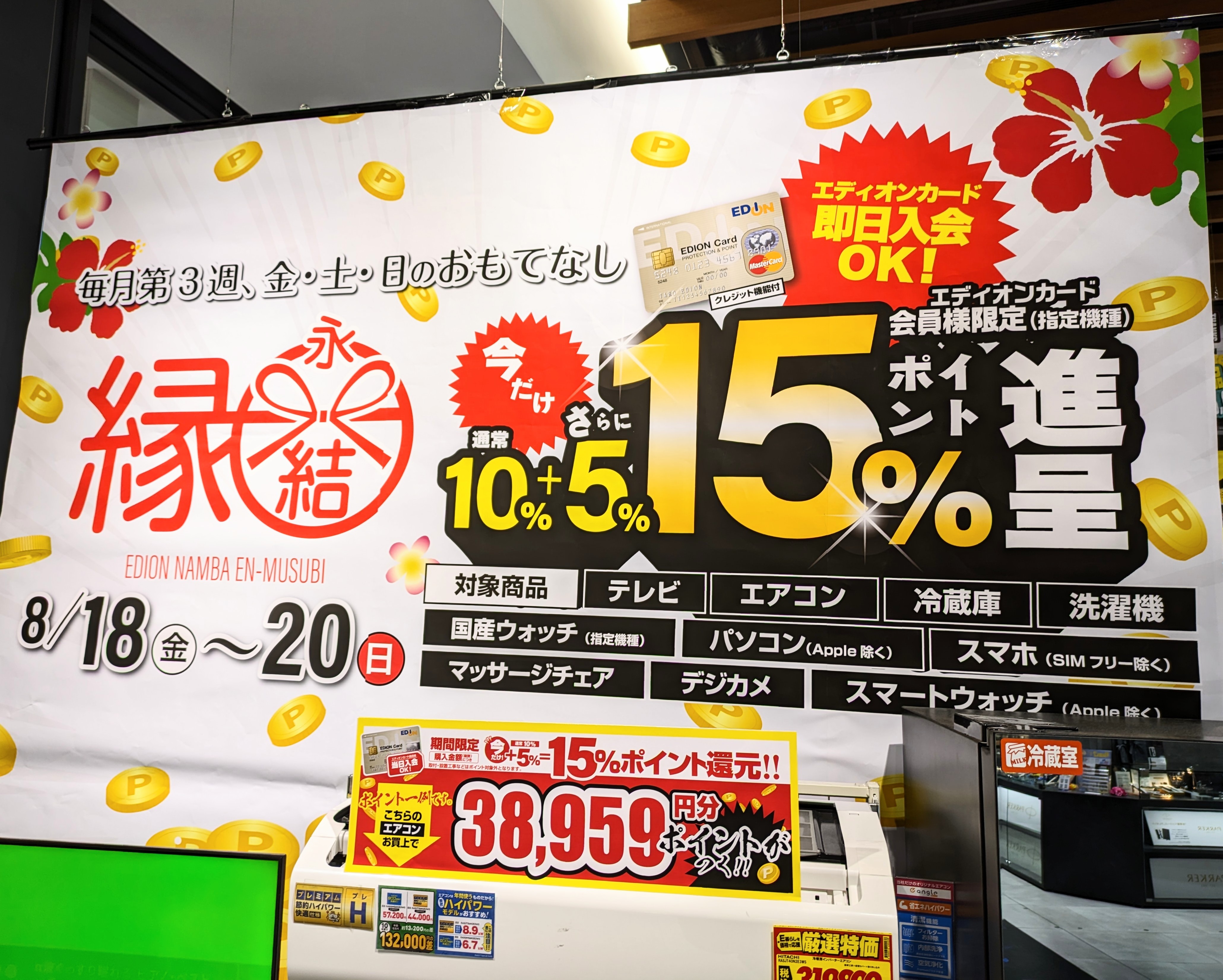 さらに20,000ポイント還元となっています。そして、なんば本店ならエディオンカード会員限定で税抜価格に対して15%ポイント還元(約6,228ポイント)が追加。なお、15%ポイント還元は日曜日まで。