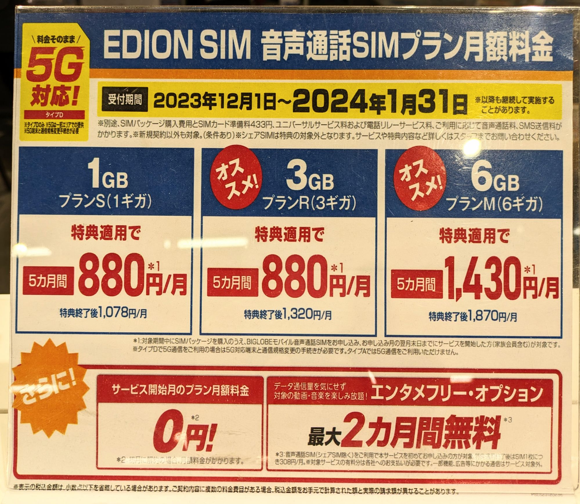 詳細はエディオンSIMスタッフにご確認下さい。