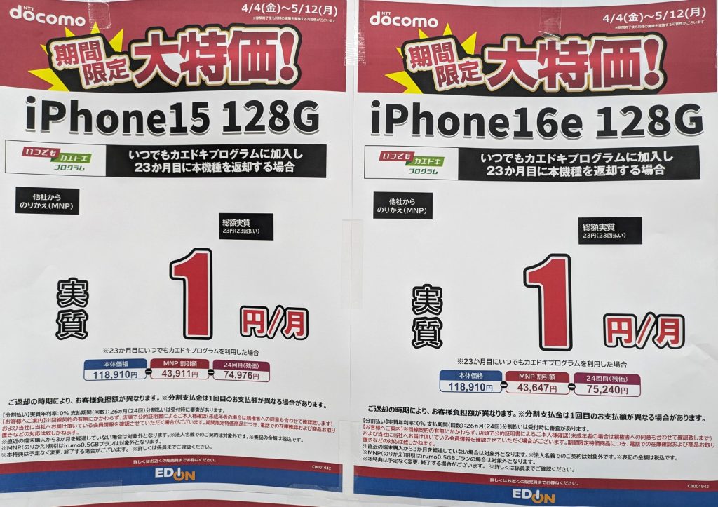 少なくともGW中は各量販店で一括0円や1円が継続されるものと思われます。