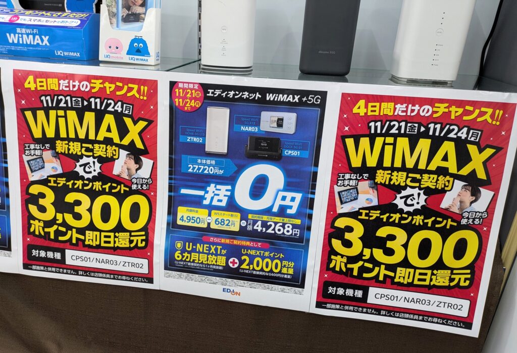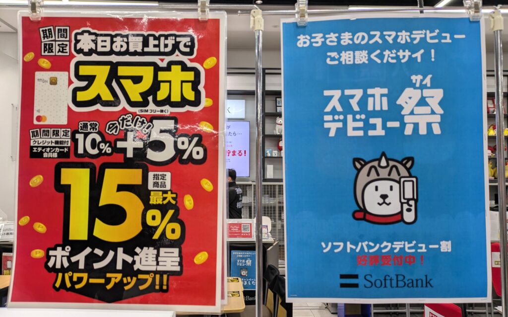 エディオンでは、ソフトバンクへのSIMのみMNPで20,000ポイント還元(通常より5,000ポイント増)となっています。