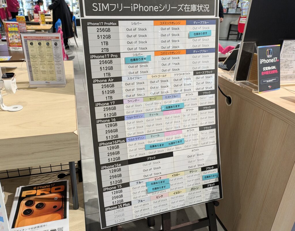12/6(土)、なんば本店の在庫状況です。ビッグローブの増額もありません。