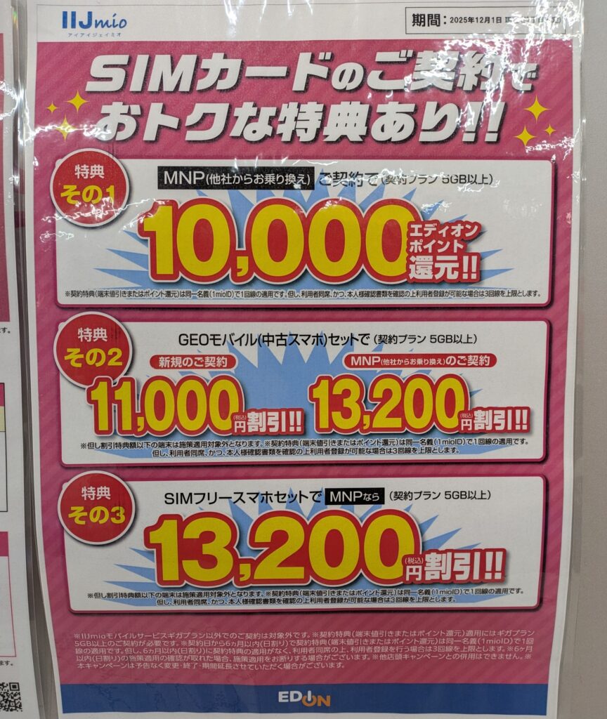 事務手数料は4,950円(税込)、12/8(月)まで。各量販店でも1円になっています。