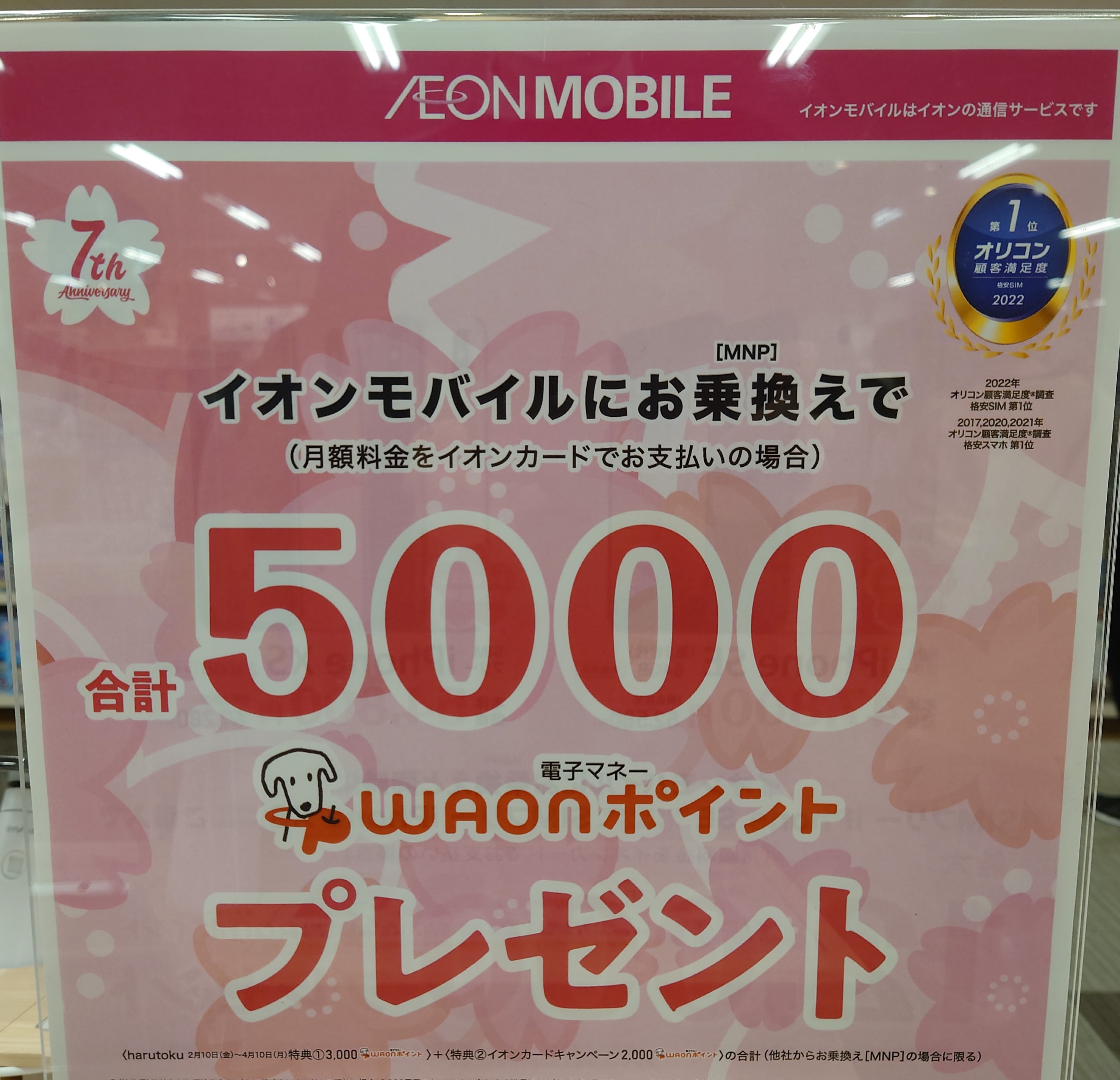 さらに、引き続きharutokuキャンペーンも実施中(2/10~4/10まで)で、SIMのみMNPで3,000ポイント還元(期間一人1回限り)、月額料金をイオンカードに設定で2,000ポイント還元(過去分を含めて一人1回限り)で、計5,000ポイント還元です。こちらの詳細はイオンモバイルのホームページでご確認を。