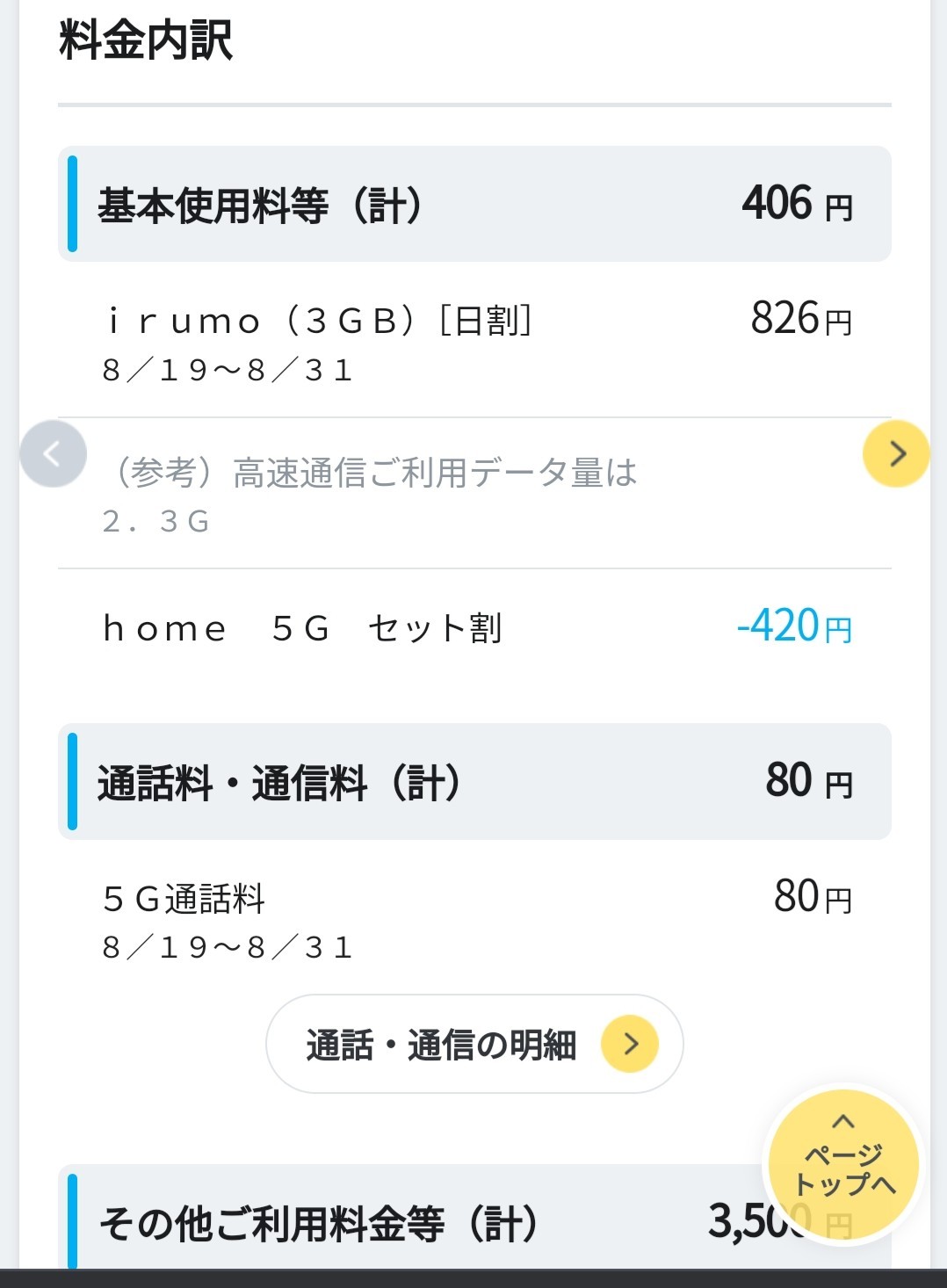 先月(8月)にイルモ3GBで契約してますが、初月は日割りでhome 5Gセット割が入っていました。