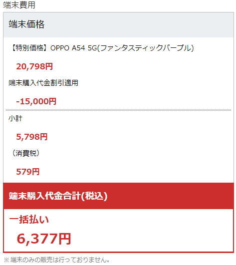 Android端末の「本体価格(税込)」、及び「クーポン適用後の価格(税込)」は以下のとおり。