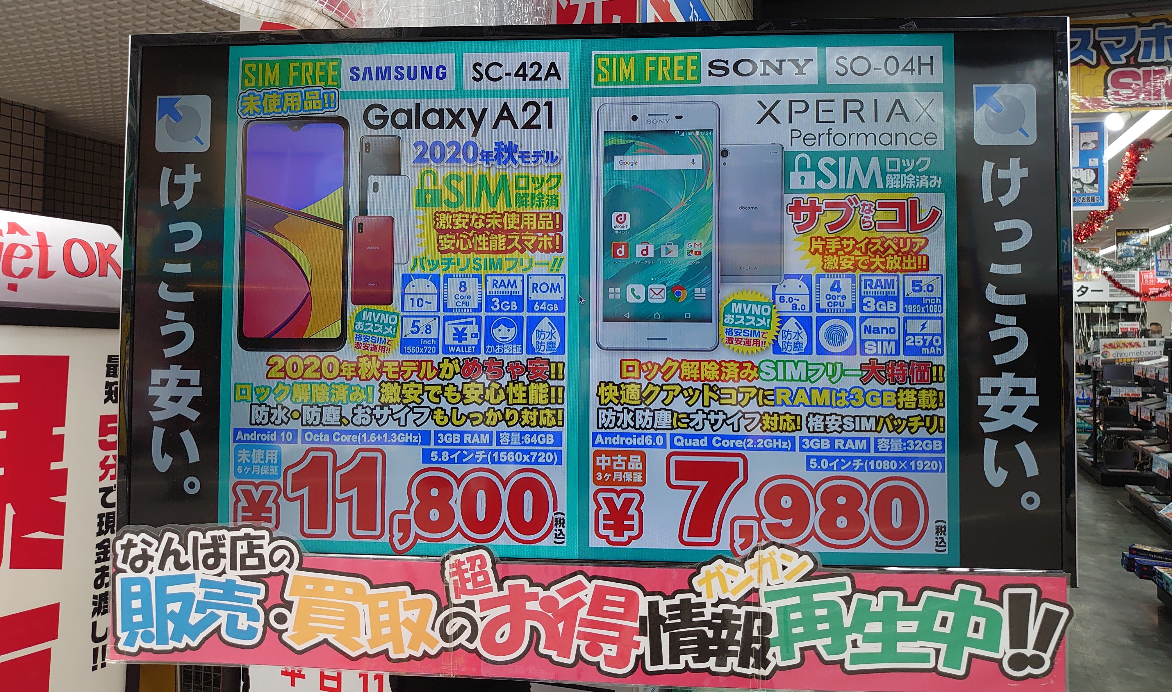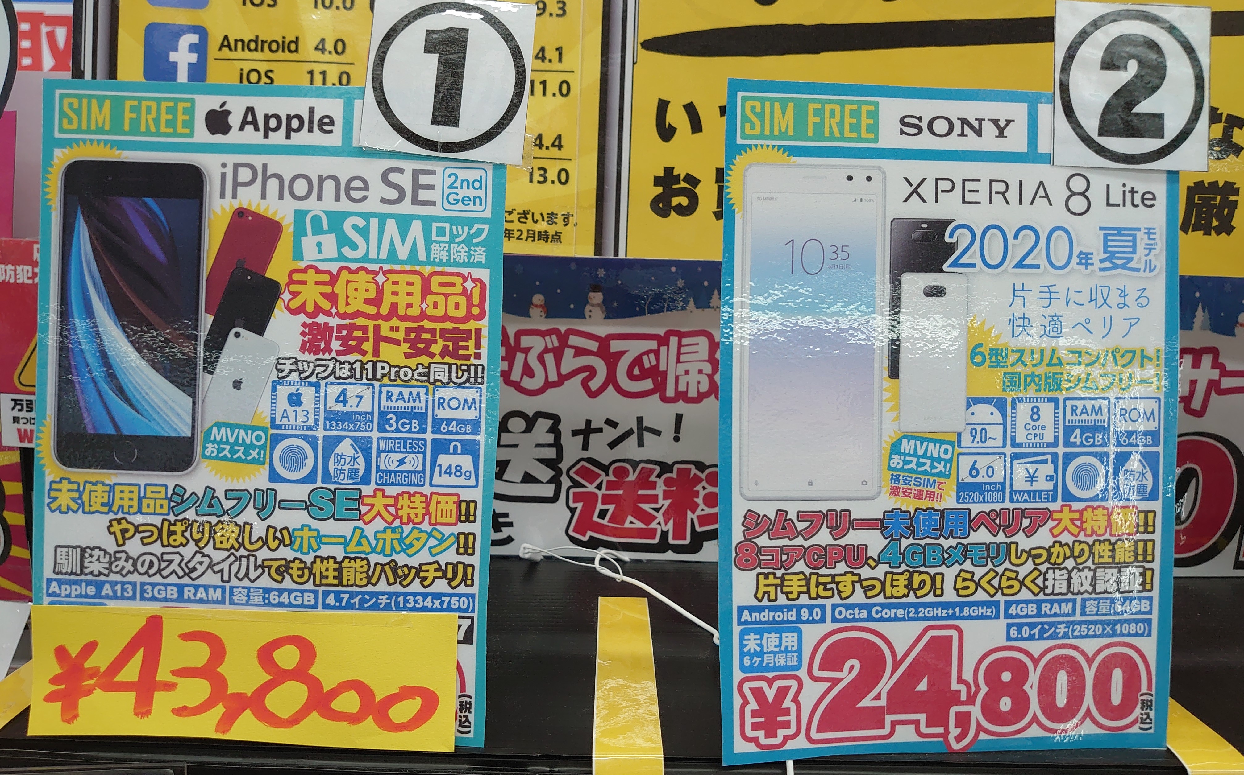 イオシスでは、未使用品の、Xiaomi Redmi 9Tが15,800円(税込)、ドコモ版SIMロック解除済のGalaxy A21が11,800円(税込)、SIMフリーのiPhone SE(第2世代)64GBが43,800円、ドコモ版SIMロック解除済のarrows 5Gが49,800円等となっています。