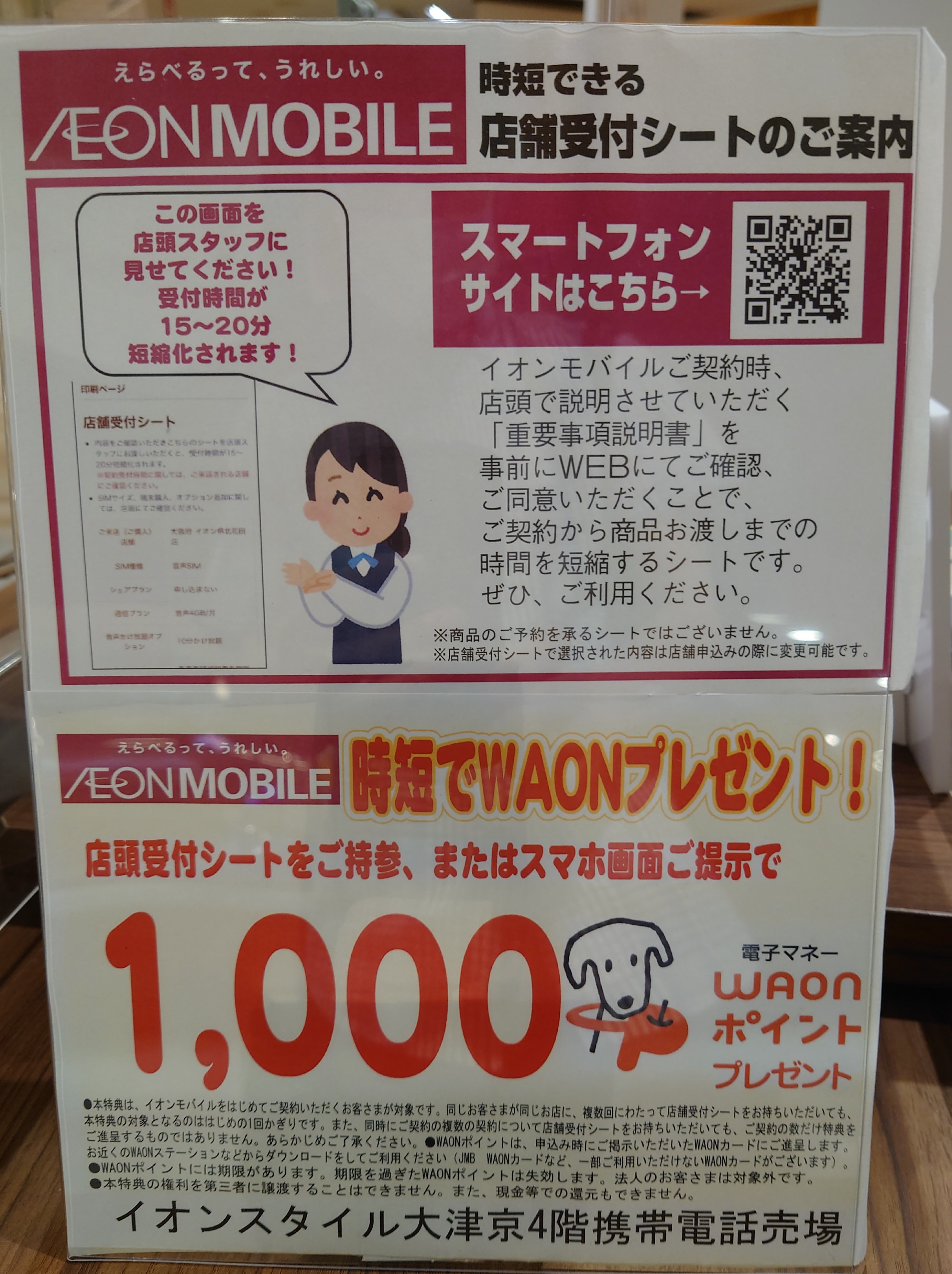 イオンスタイル大津京のイオンモバイルでは以下のキャンペーンが実施されています。