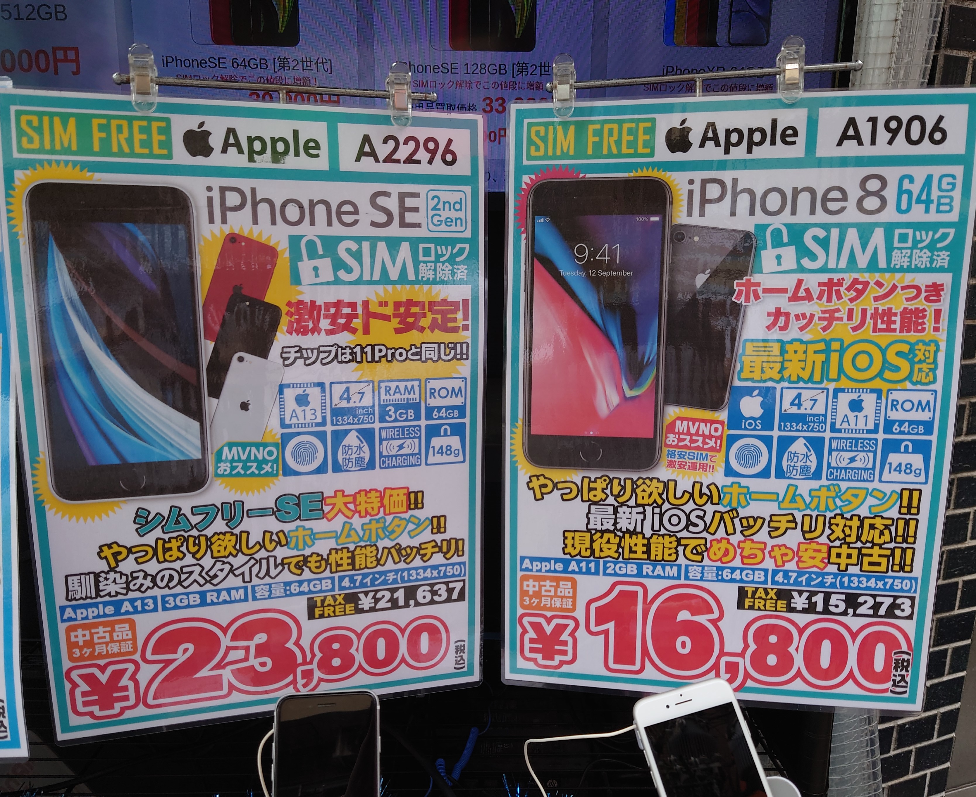 イオシスでは「iPhone 8 64GB」の中古Cランク16,800円(税込)、「iPhone SE(第2世代)64GB」の中古Cランクが23,800円(税込)となっています。