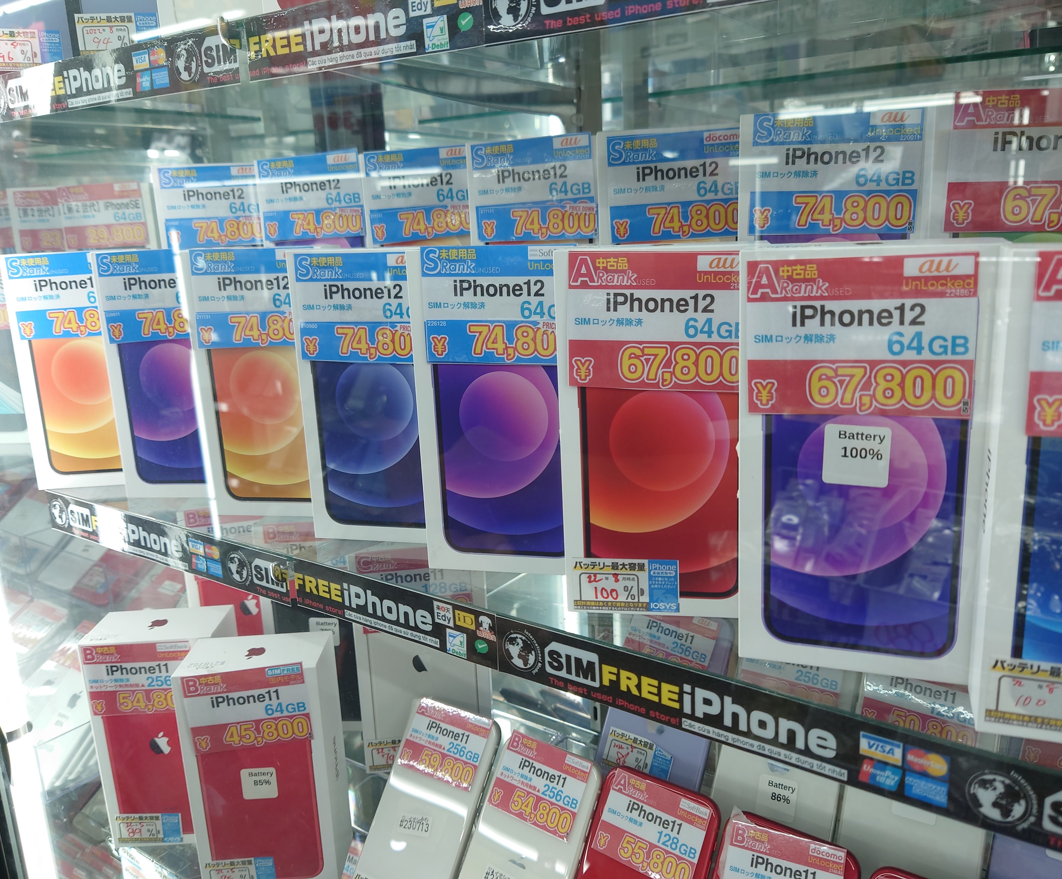 「iPhone 12 64GB」の未使用品は74,800円(税込)、中古Aランクは67,800円(税込)とまだまだ高価格水準で推移しています。