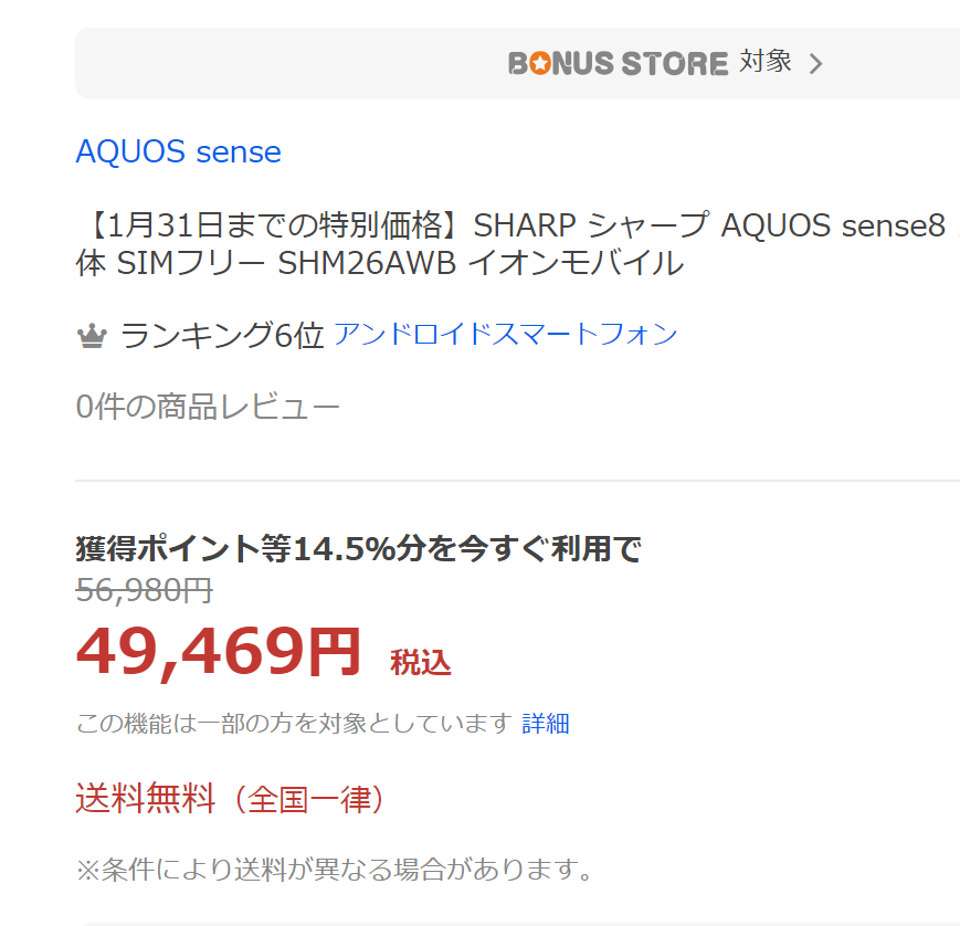 ・AQUOS sense8(イオンモバイル Yahoo!ショッピング)