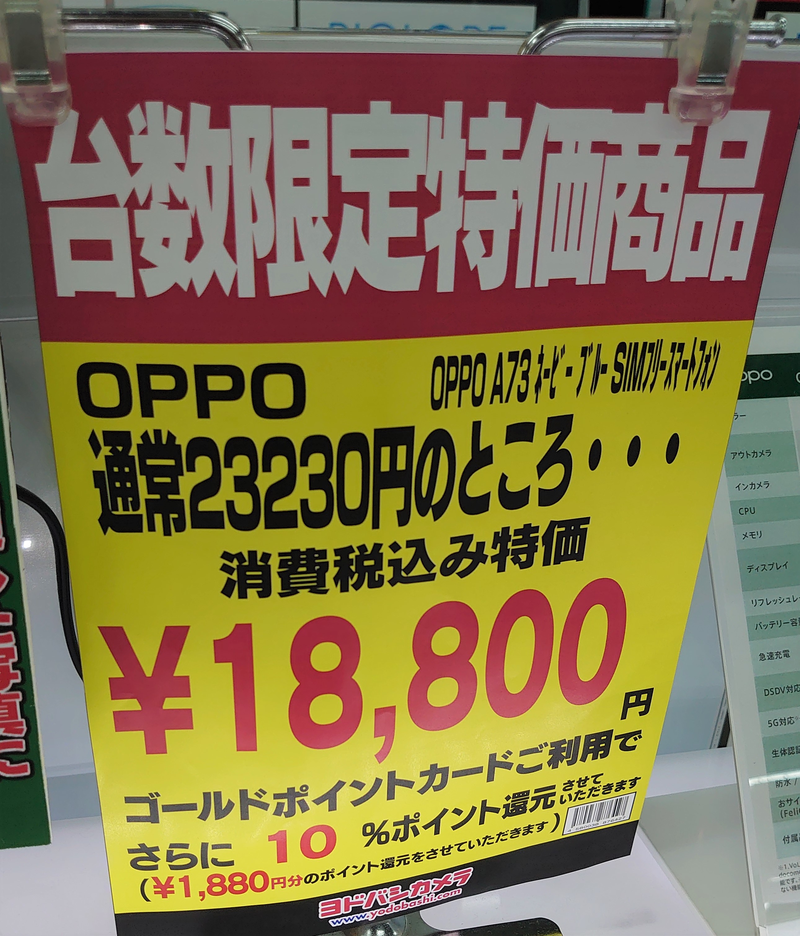 | OPPO A73 | 18,800円 | 台数限定 |