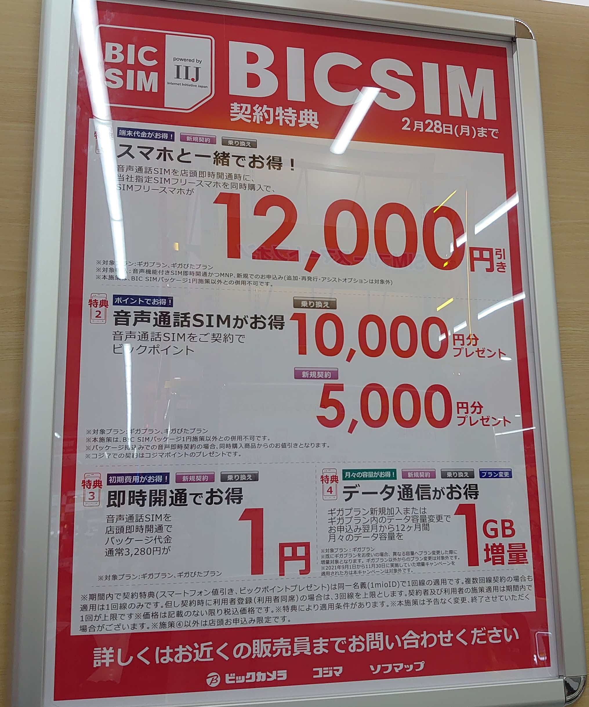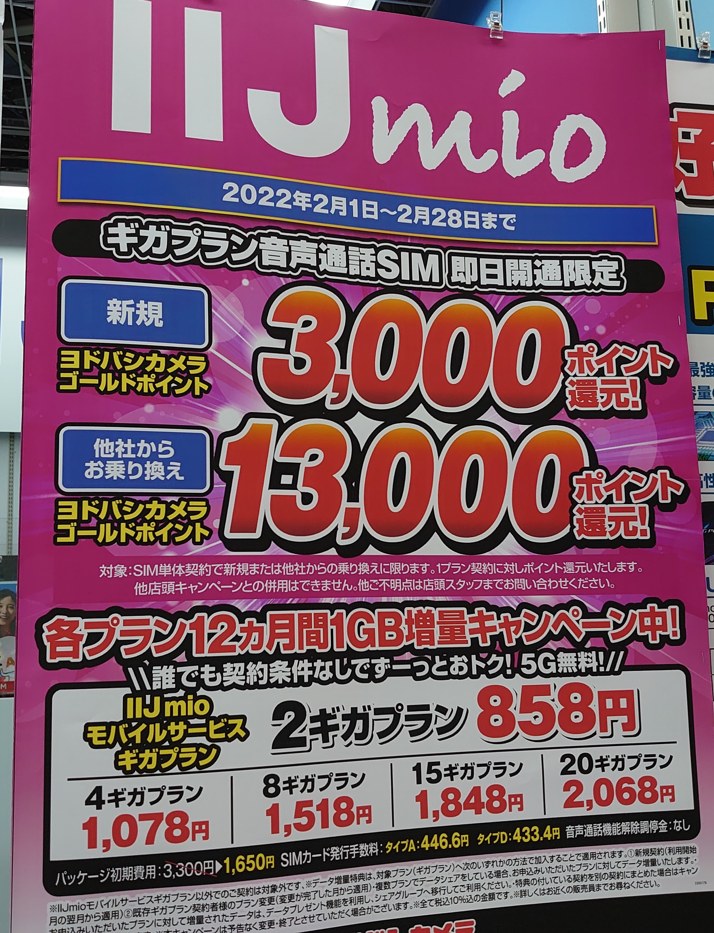 さて今回ヨドバシ・ビック両方でIIJを契約した場合、
