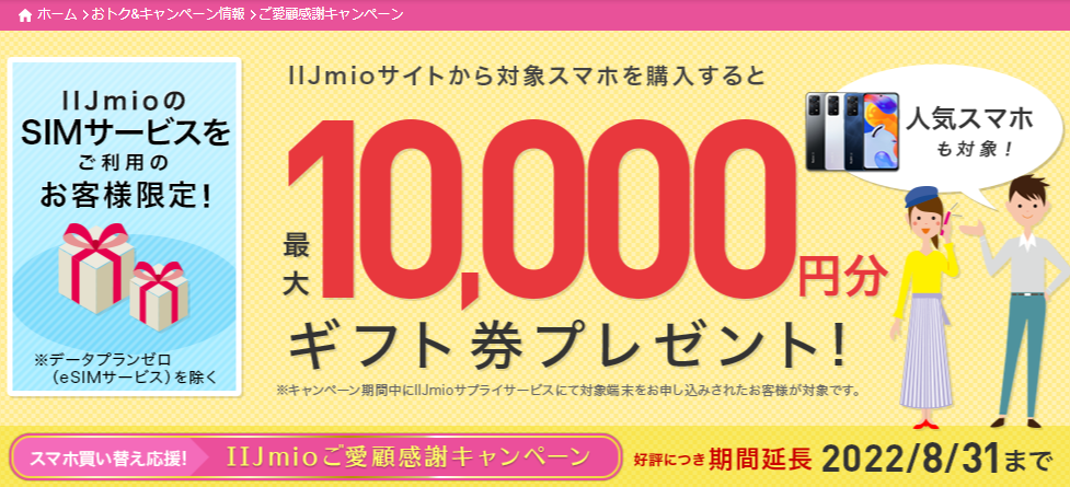 IIJmioのMNP限定(音声ギガプラン850円/月~契約必須)スマホ大特価セールは8/31(水)まで。一人1台限り。2021/9/1以降のMNP特価CPを利用されている方は「対象外」です。