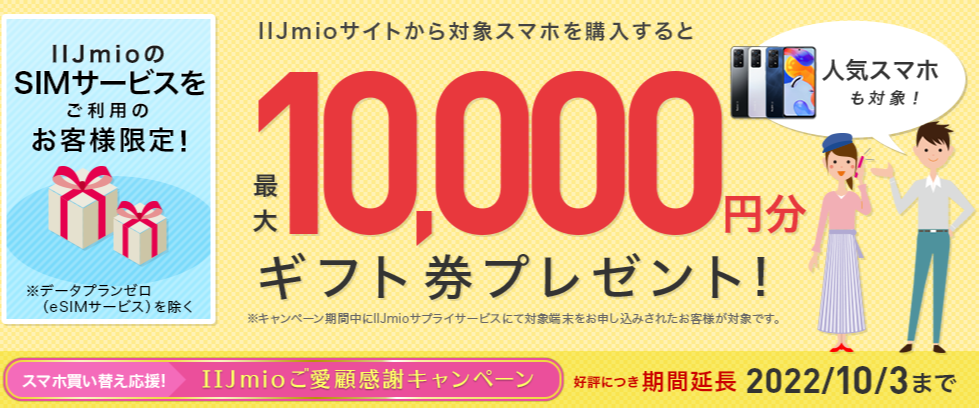IIJmioのMNP限定(音声ギガプラン850円/月~契約必須)スマホ大特価セールは10/3(月)まで。一人1台限り。2021/9/1以降のMNP特価CPを利用されている方は「対象外」です。