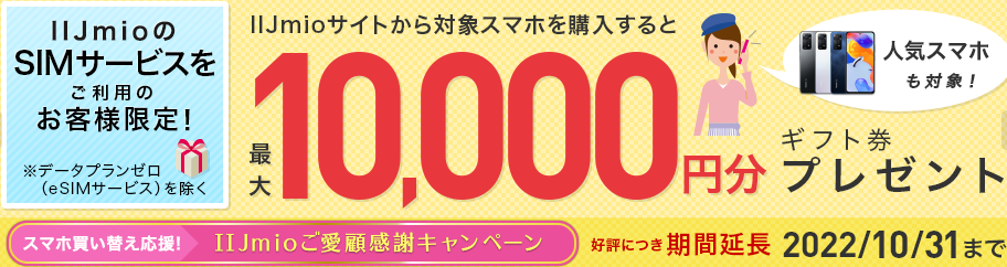 ・IIJmio 乗り換え応援キャンペーンは10/31(月)まで