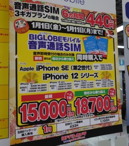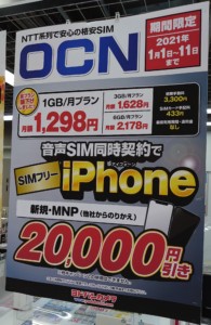 2021年になって初めて登場です。新規・MNPともに20,000円割引です。iPhone 12を含むSIMフリーiPhoneが対象です。