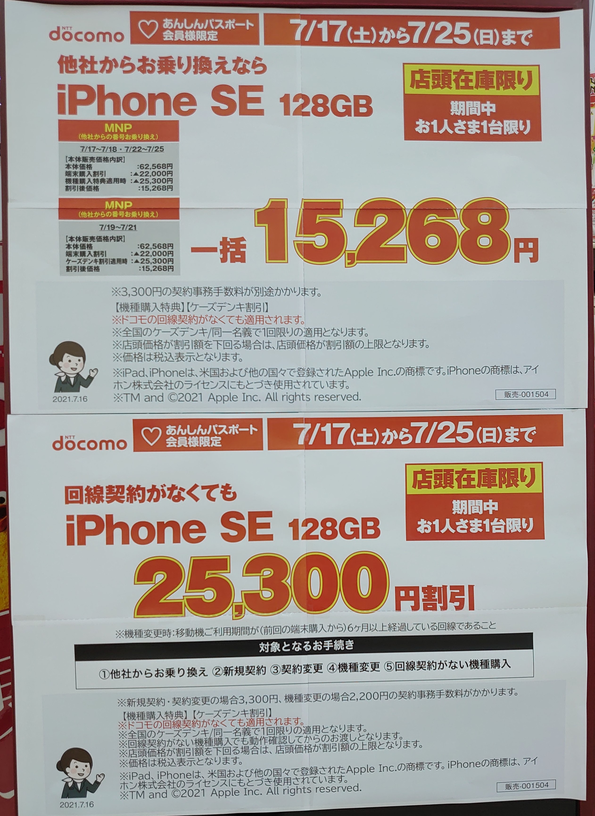 3キャリアで実施されている「iPhone SE(第2世代)」のキャンペーンですが、既にケーズデンキでは7/25(日)迄で案内済です。