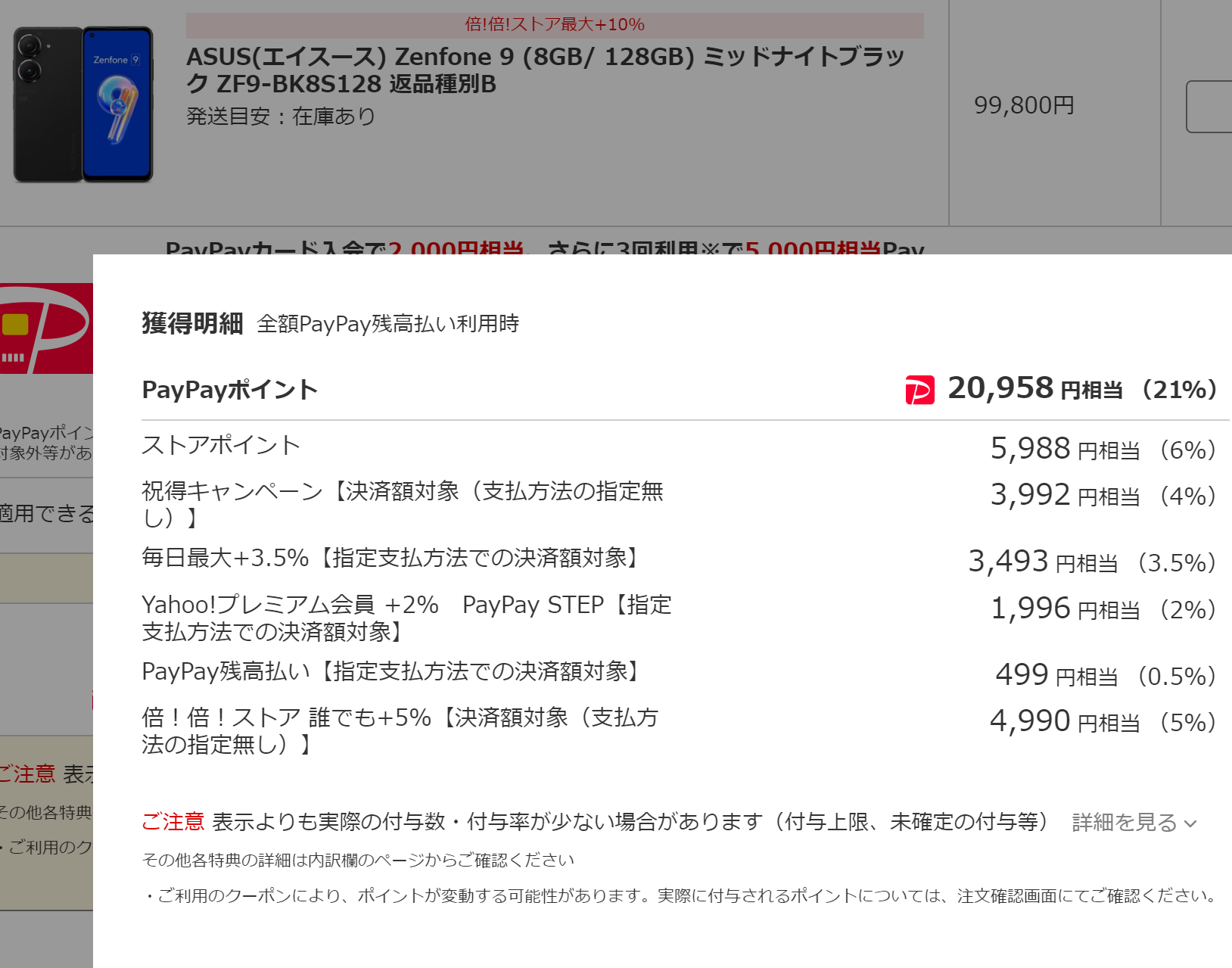 2022年11月23日(水・祝)、「Joshin web」では、2022年11月4日発売の「Zenfone 9 128GB」が約20,000円相当以上のPayPay還元となっています。